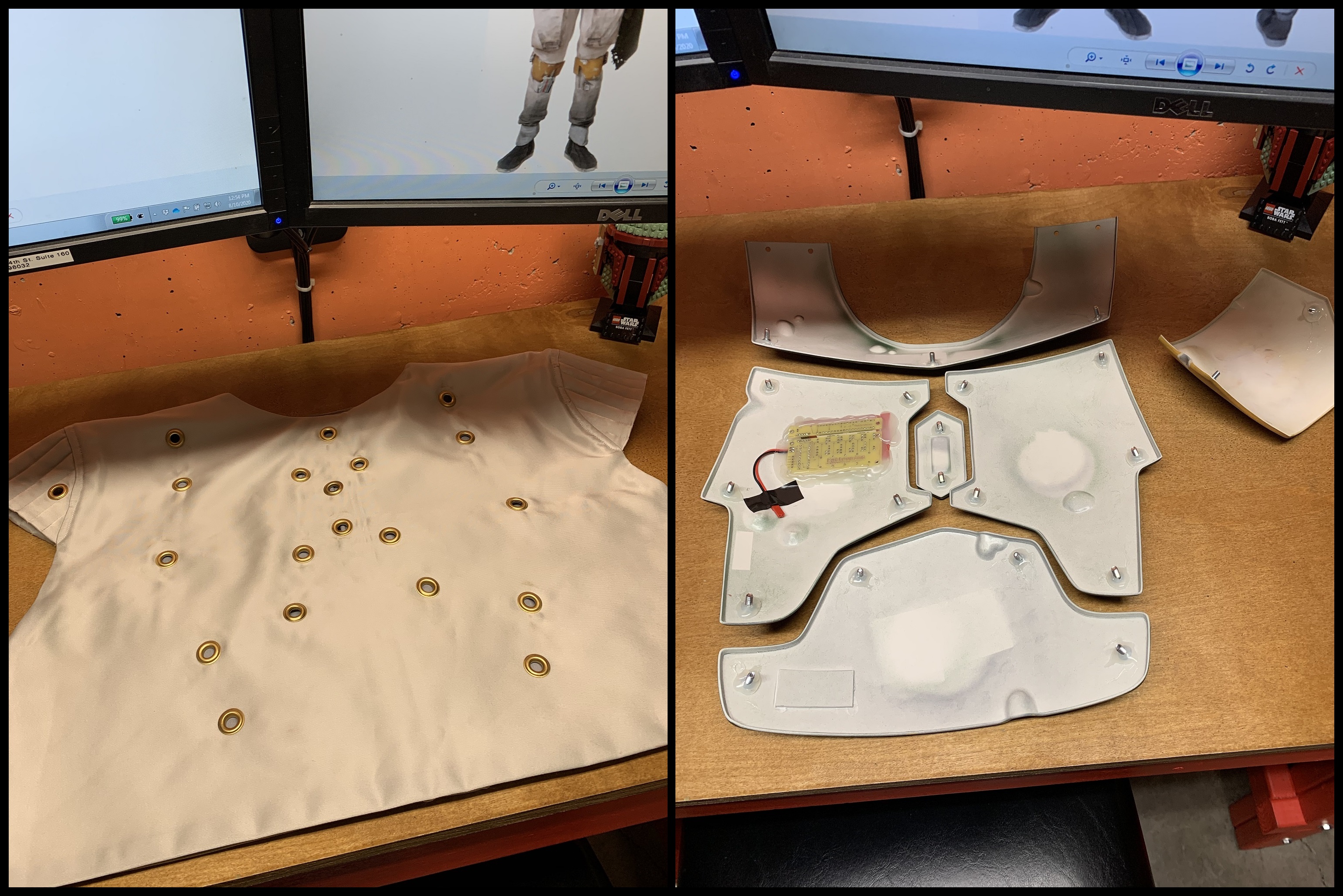 Then it was just attach the armor to the vest since I had already placed the opposite attachments on the armor prior. And here's how it looks so far with the chest display lit up and braids on...