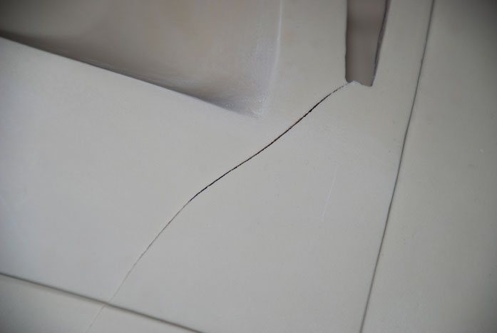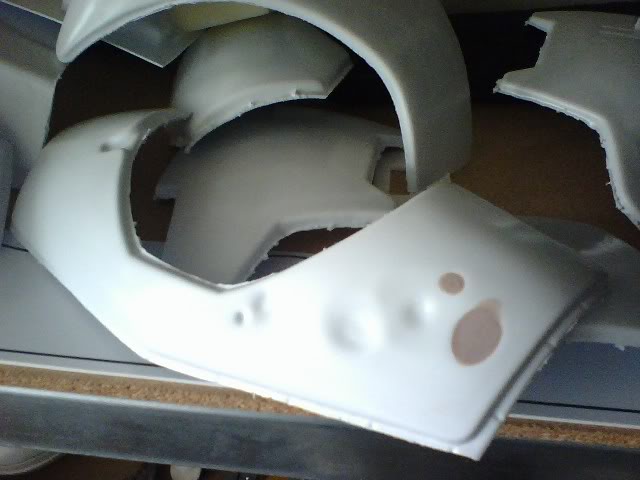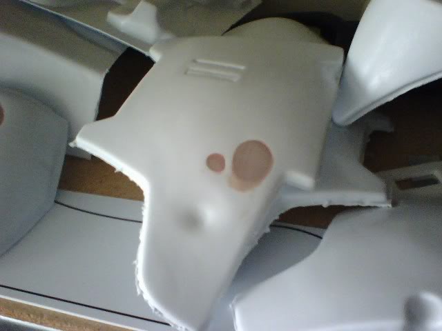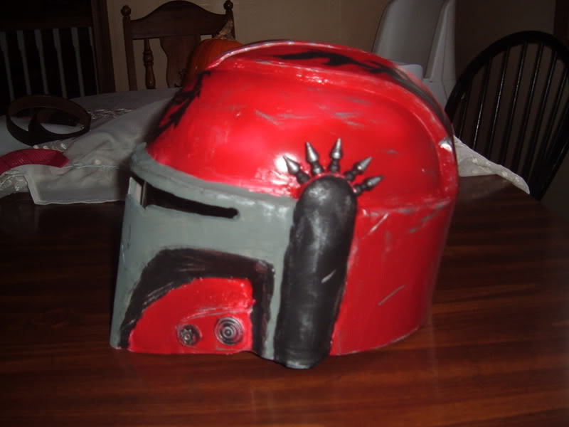 The eye sockets, spikes and blood spitters were formed using 1/8" sintra (PVC foamboard) Initially I placed temporarily placed the pieces as a mock up and later made changes to position.