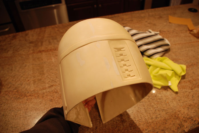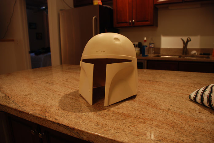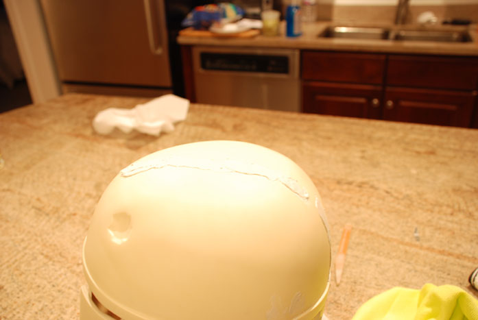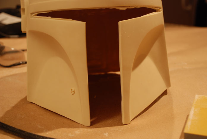 Once the rough head was constructed, I did a fitting on my son and realized the head was too tall. I removed 0.5" from the overall height in order to shrink the head.