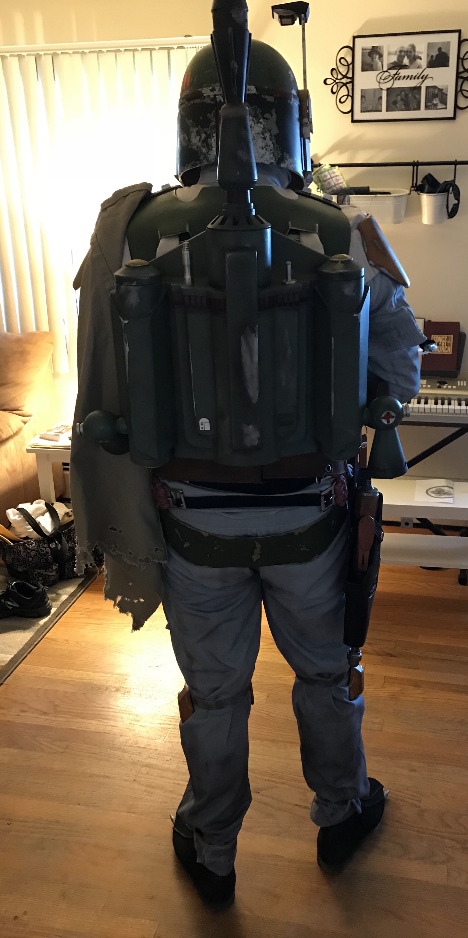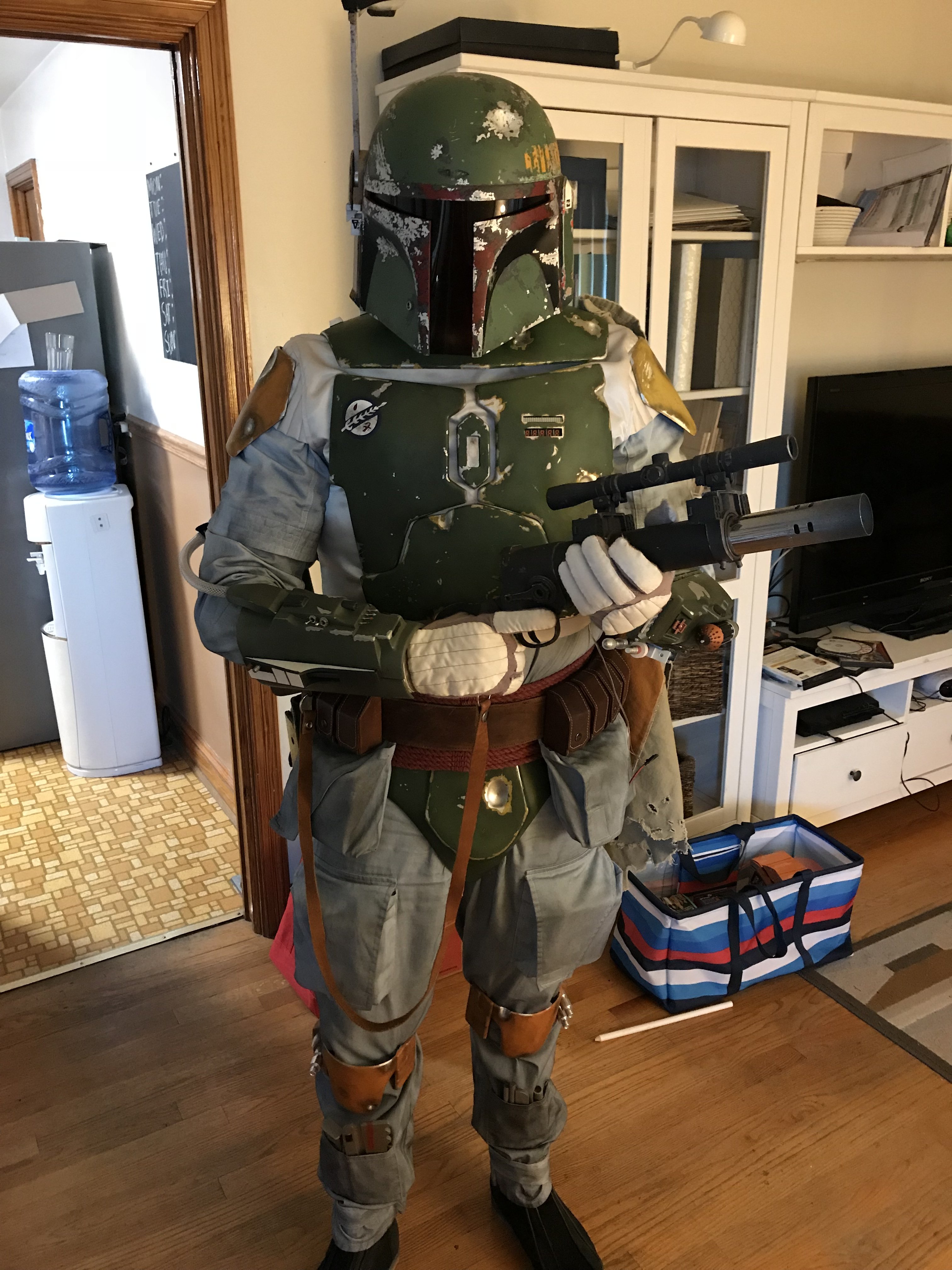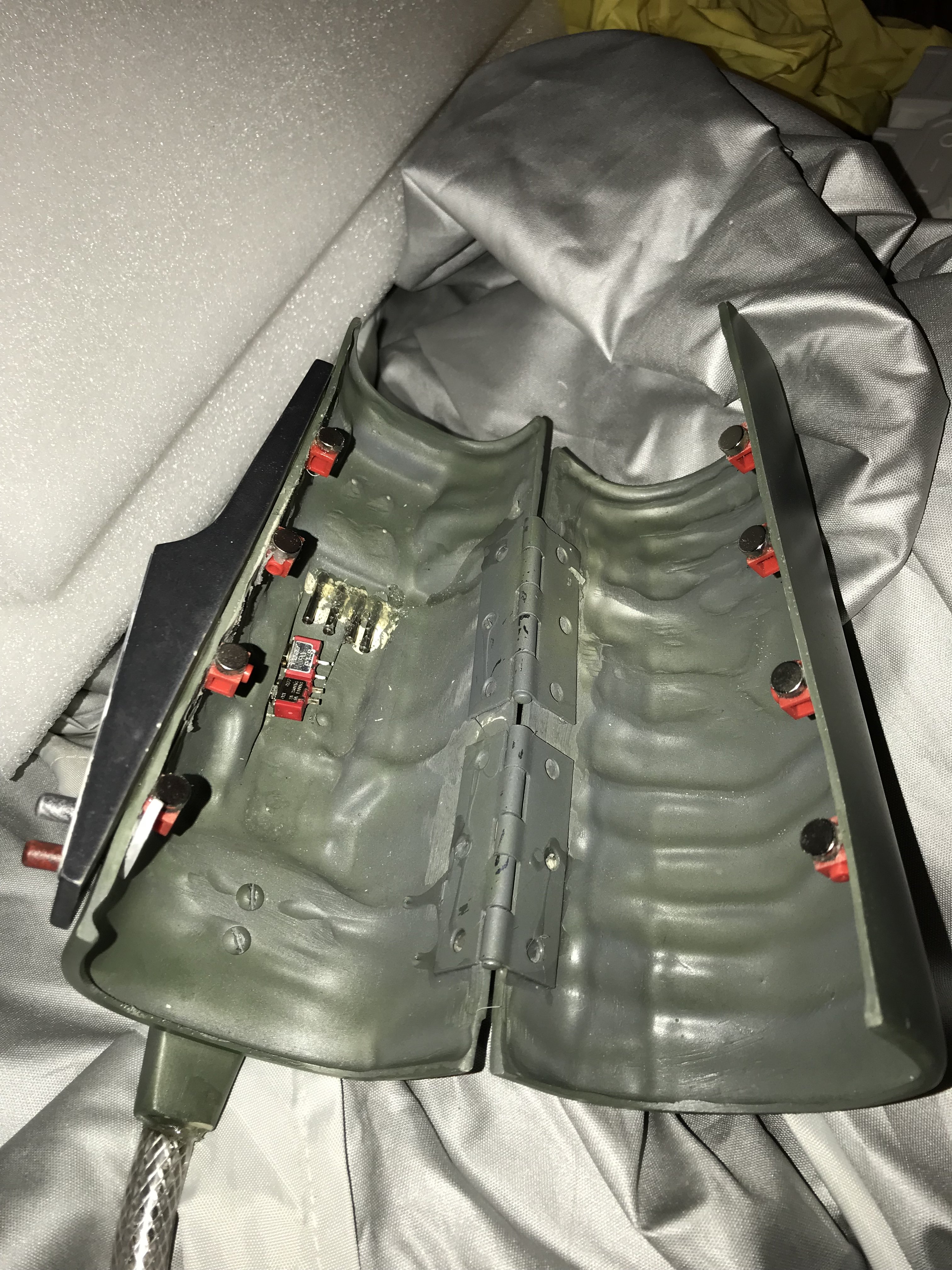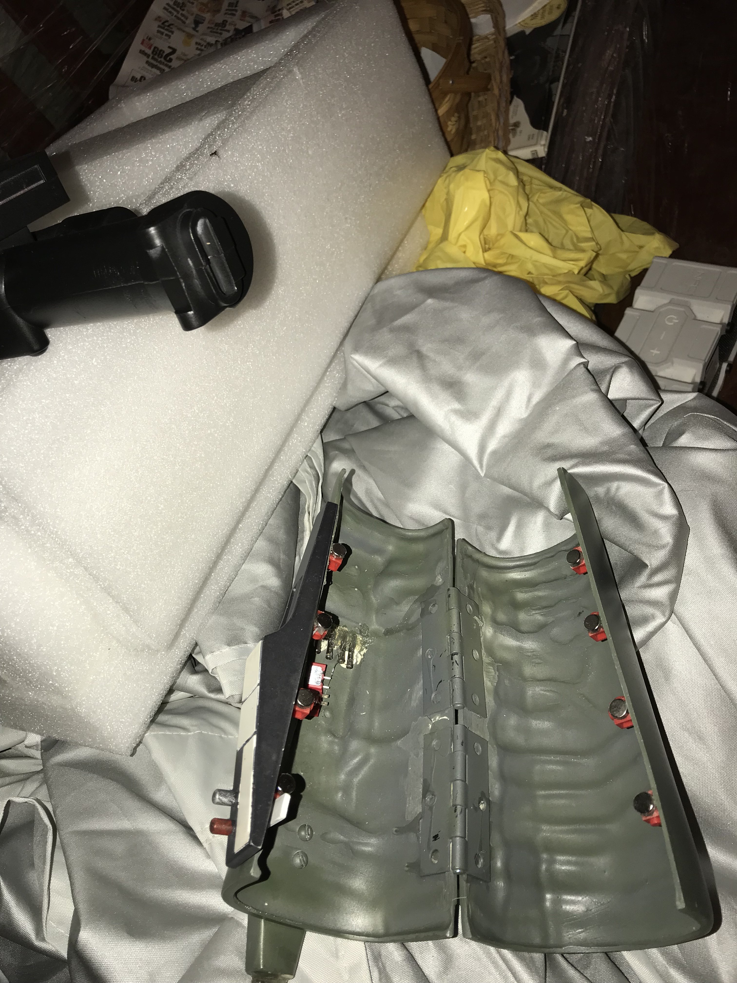 Ugh! Been busy working sick for the last week and a half. I’ve had three people I know with 3D printers who’ve offered to help my with my EE-3 stock greeblies and none have had time to print anything after several months. I guess I can’t complain. They offered, but it’s not like it’s my printer. The guy I bought it from didn’t send them and promised to, but you gotta be careful on these forums, I’ve found. That being said, I got the local library printing them and the jet pack adjustment tool for me. That’s literally all I need as far as parts go. I cut up more of my batninja flak vest today.