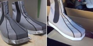 I am building a ROTJ Boba Fett and have just acquired a pair of MoW boots. I have seen versions with the black stripe down the front and others without it. Which version is screen accurate?