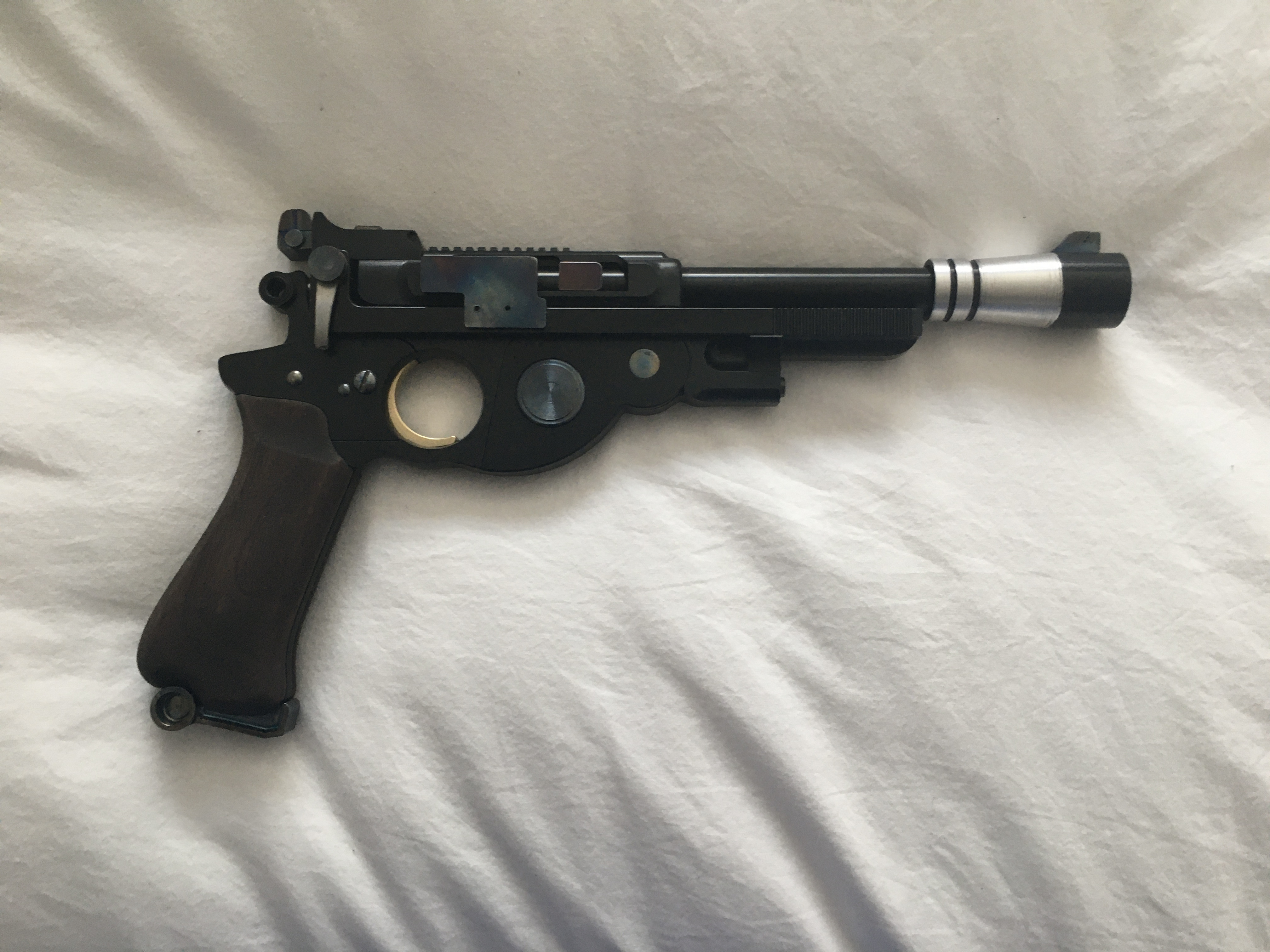 Here is the War Machine Paintball blaster pistol. I wasn't seeing many 3D printed ones I liked so figured I'd go big with this. I love you can pull the trigger and the weight to this. Great quality.