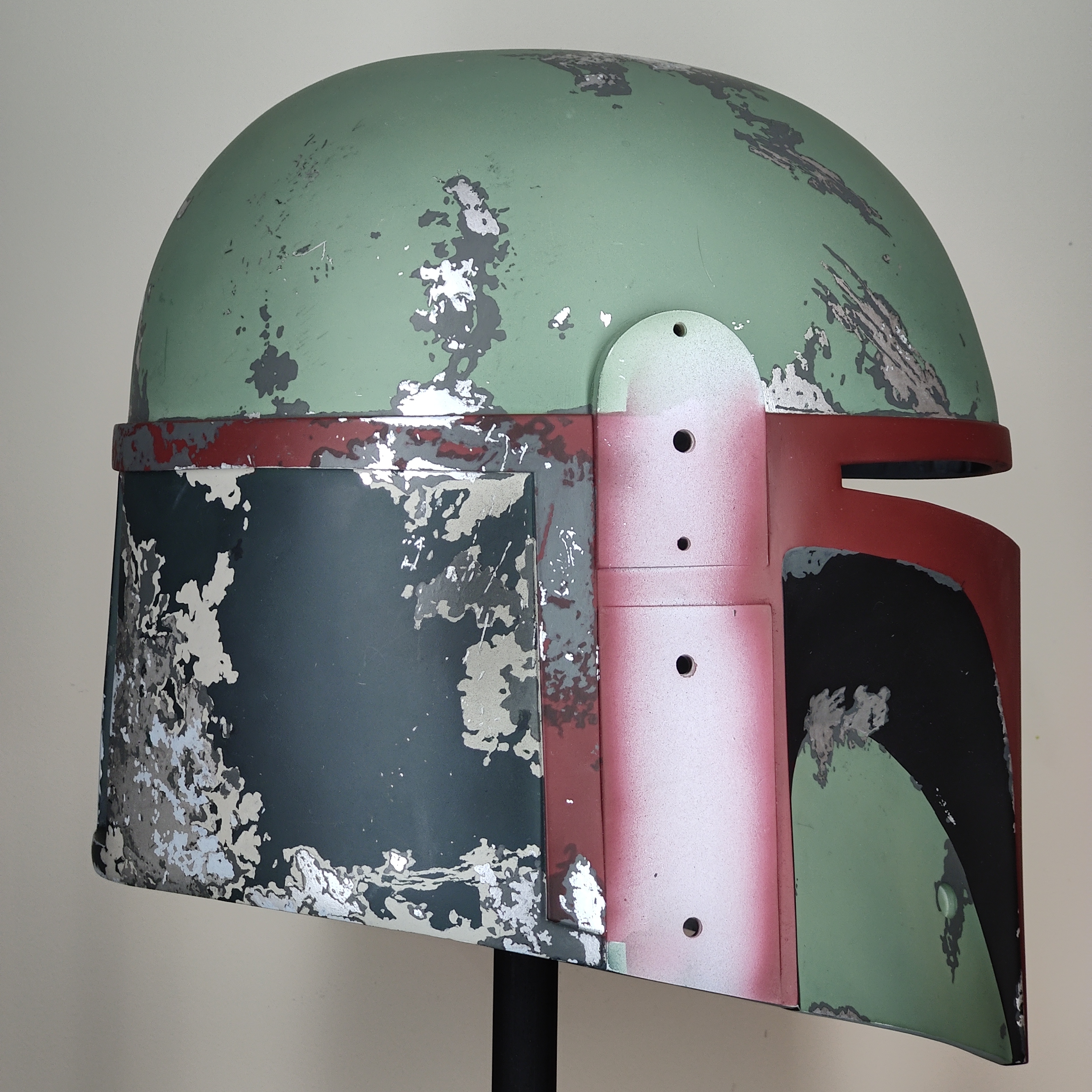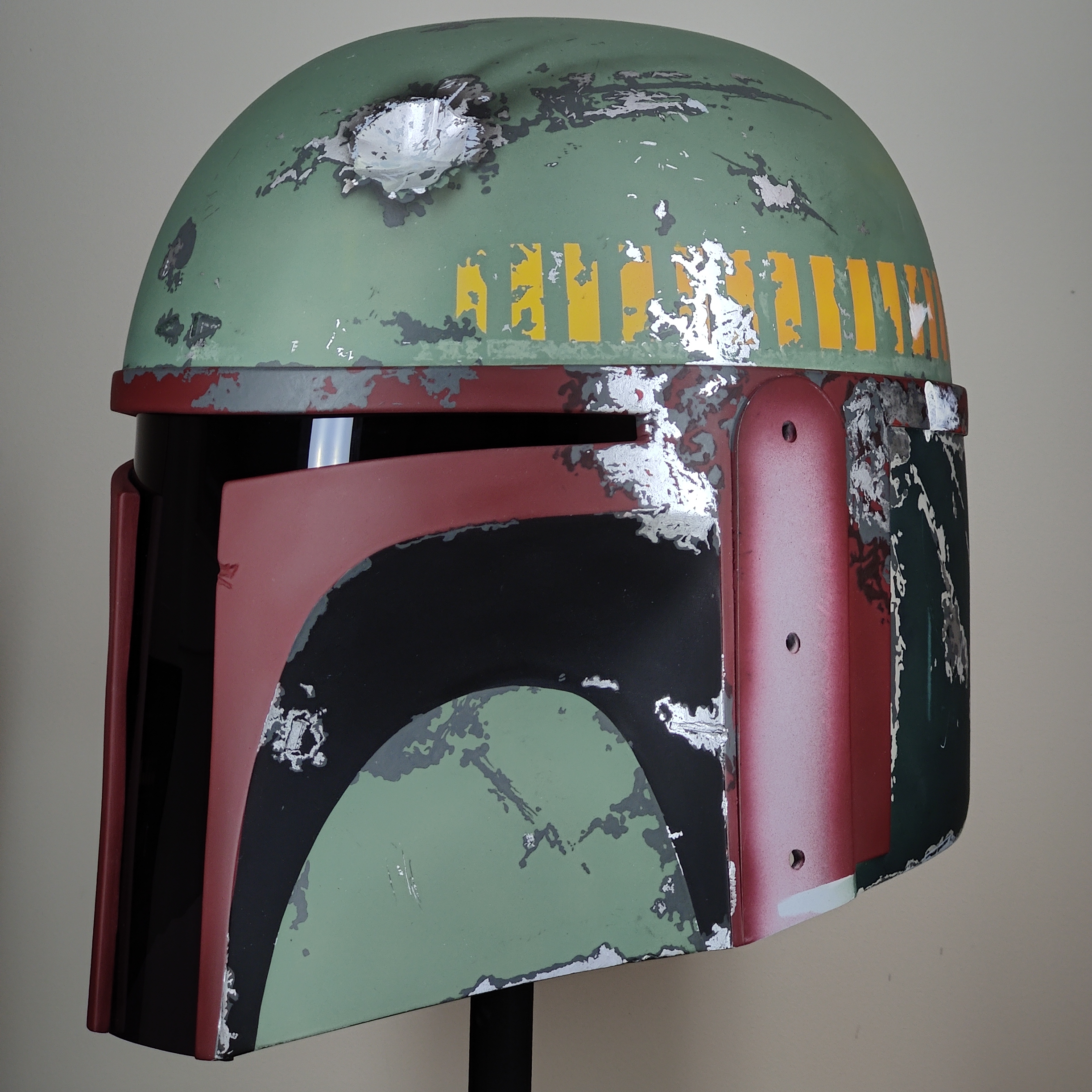 It's fun to discover things about this helmet while studying the pictures of the original for reference, like remnants of the tan (Light Earth?) wash in the recesses and around the borden connector, and in the "turn signals" and in the "data port"(?) in the black area on the left cheek.