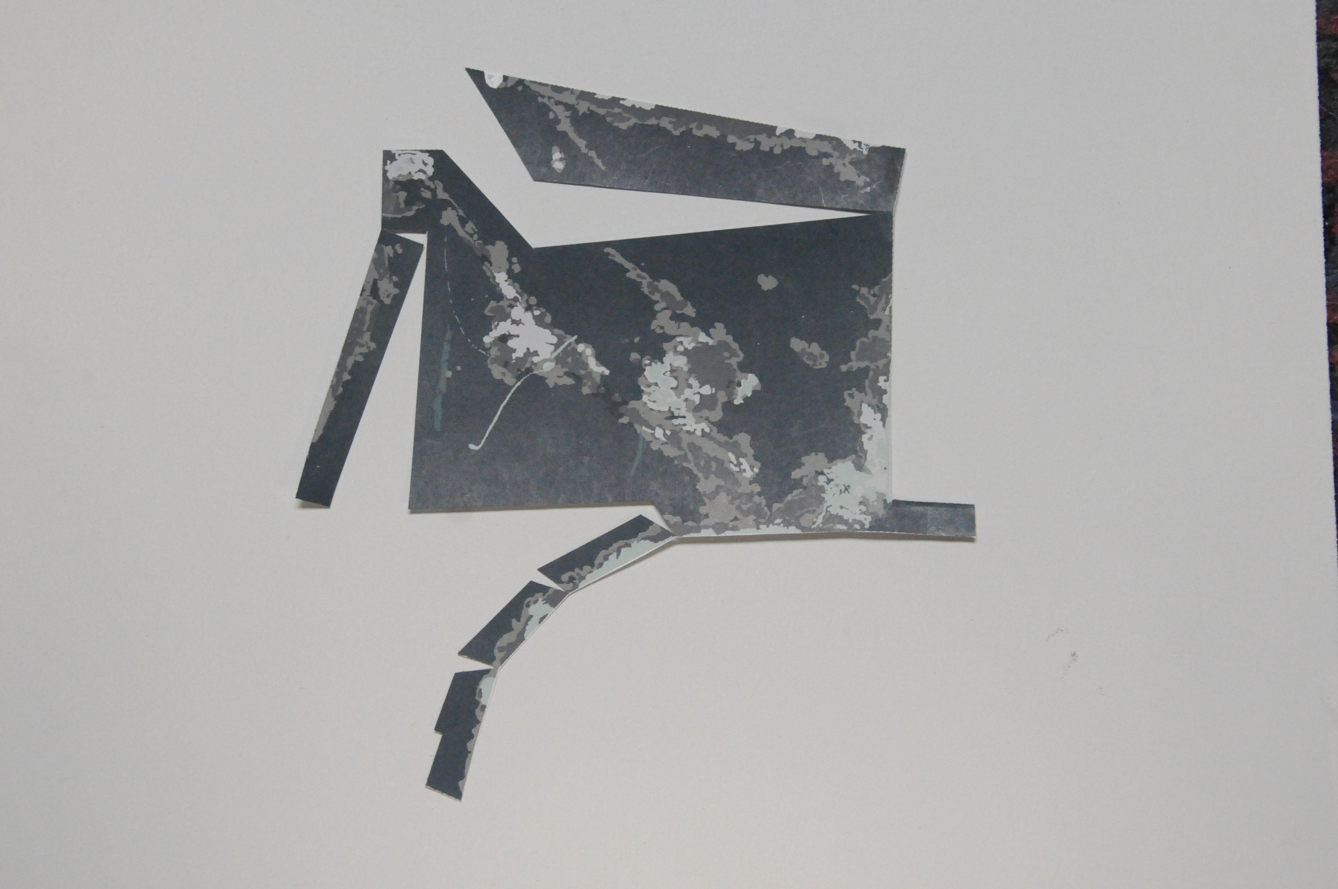 In order to improve the fit I made cuts through the broad areas of the background,in this case the blueish tone, so as not to disturb the smaller details of the stencil.
