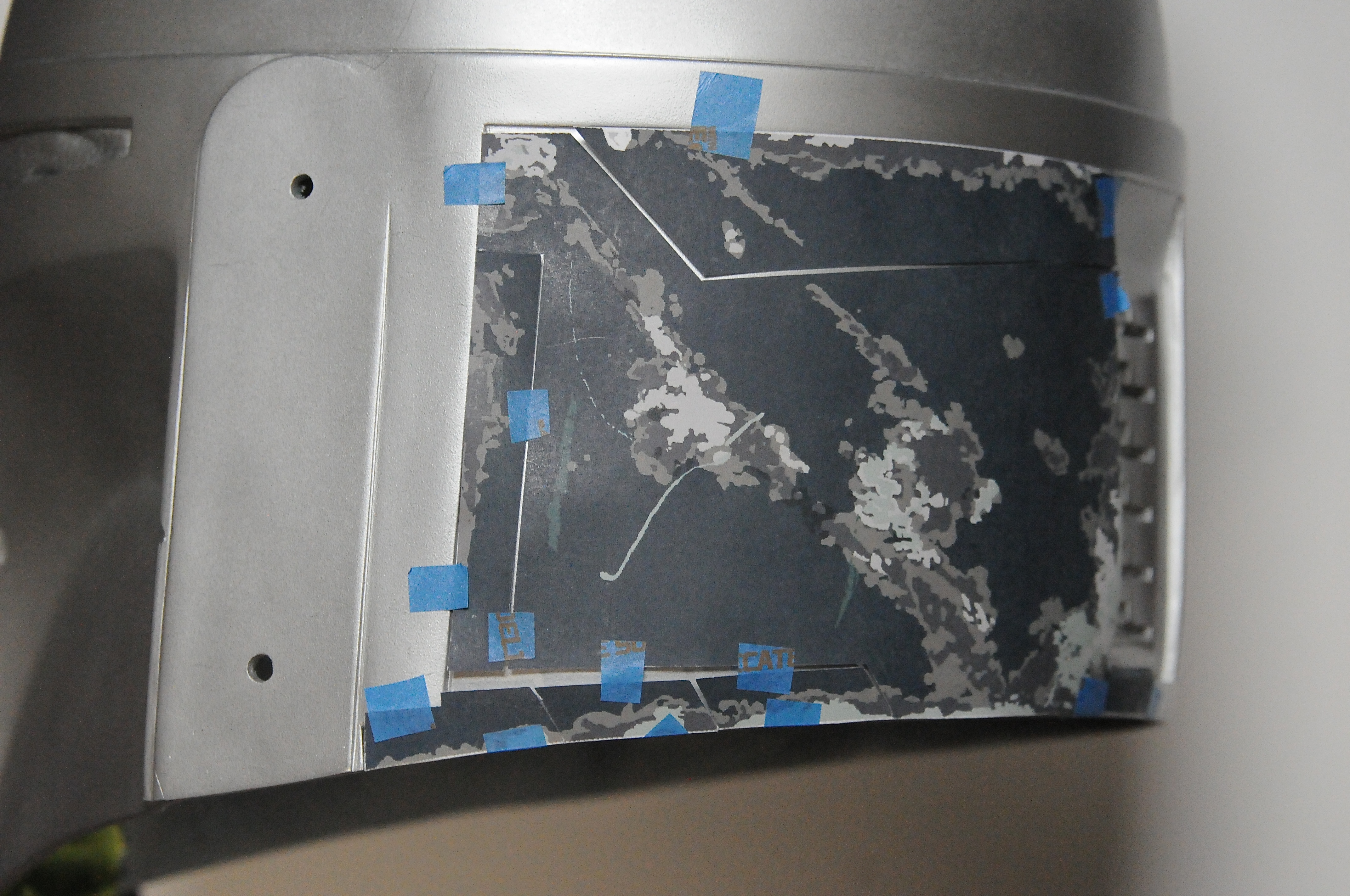 Like most I used Rafal Works Hero Helmet Stencils.It's buy no means the only way but here's the method I used to fit them to my helmet. I'll use a back panel as an example.
