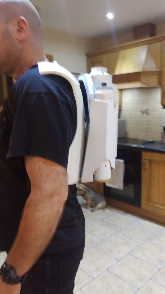 Battrooper New Hunter Aug 18, 2016 #1 Found this Water Bladder running harness in Decathlon sports shop here in the UK. Something similar to the baby carrier idea some people here have used. Add a bit of strapping to the shoulders and away you go for only £12.99.