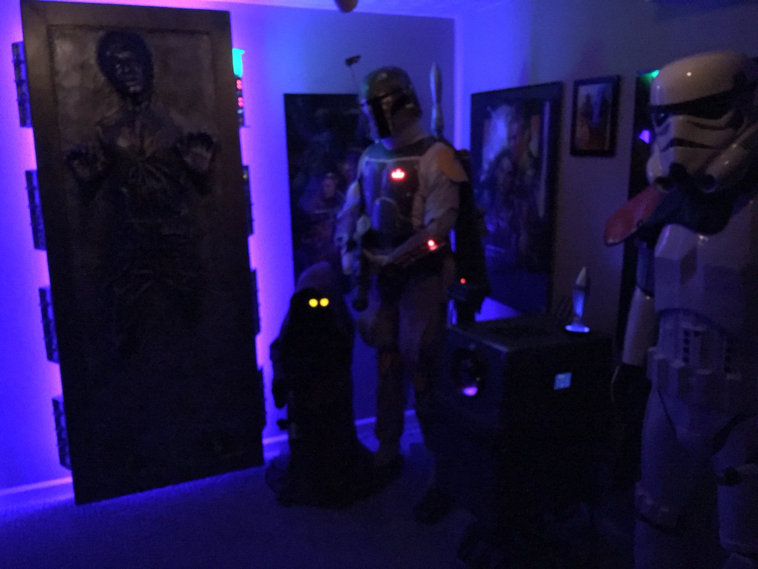 It's a rather simple build. I have about $170 USD in it if you don't count original cost of the spare junk I had stashed away. He's mostly plastic and paint. He was really fun to build because I kept thinking about what I was going to add next. I was careful not to over do it, eventually going for a tighter look. My original idea was to have wires all over the place, but I settled on the self contained recessed stuff.