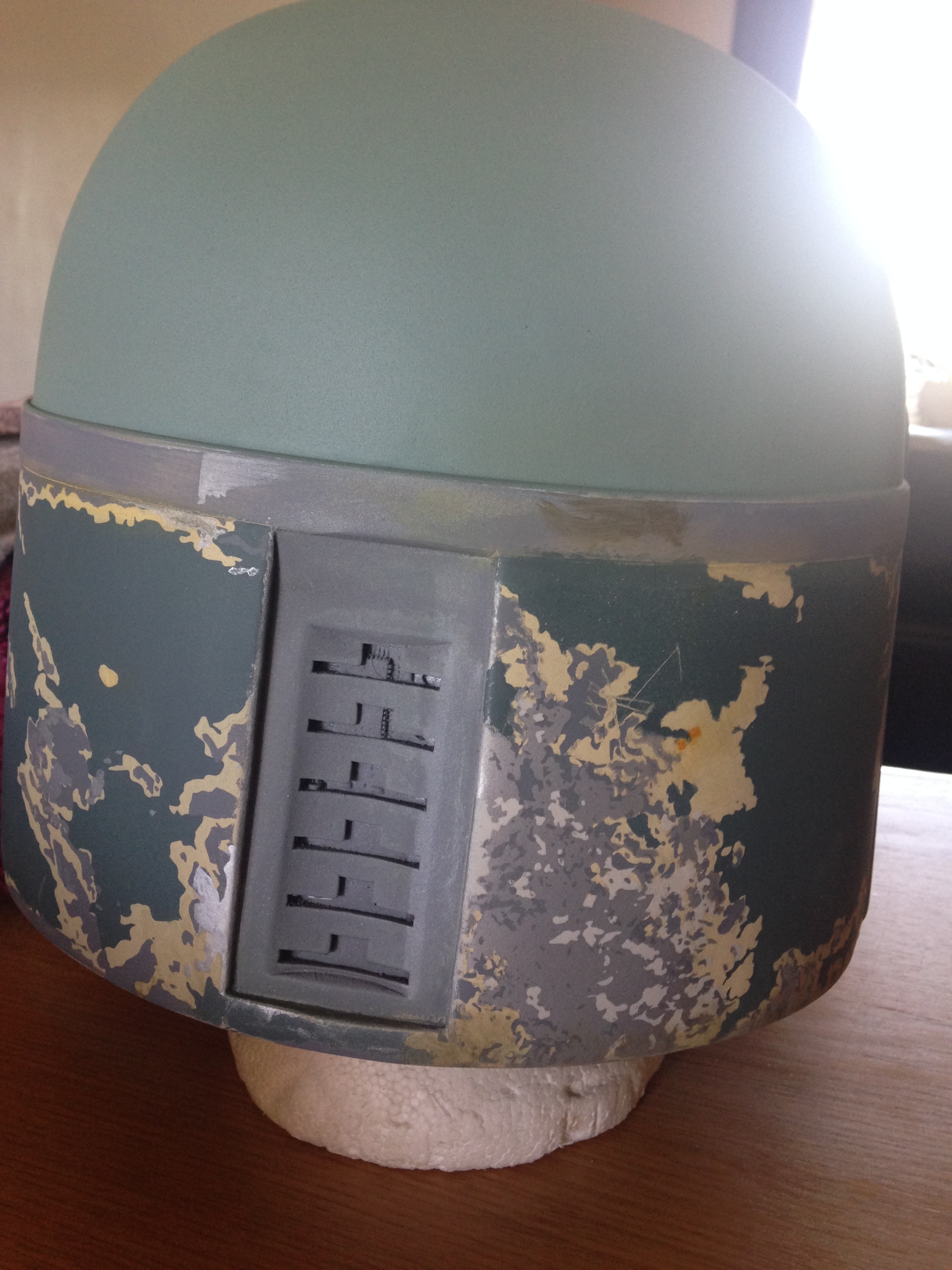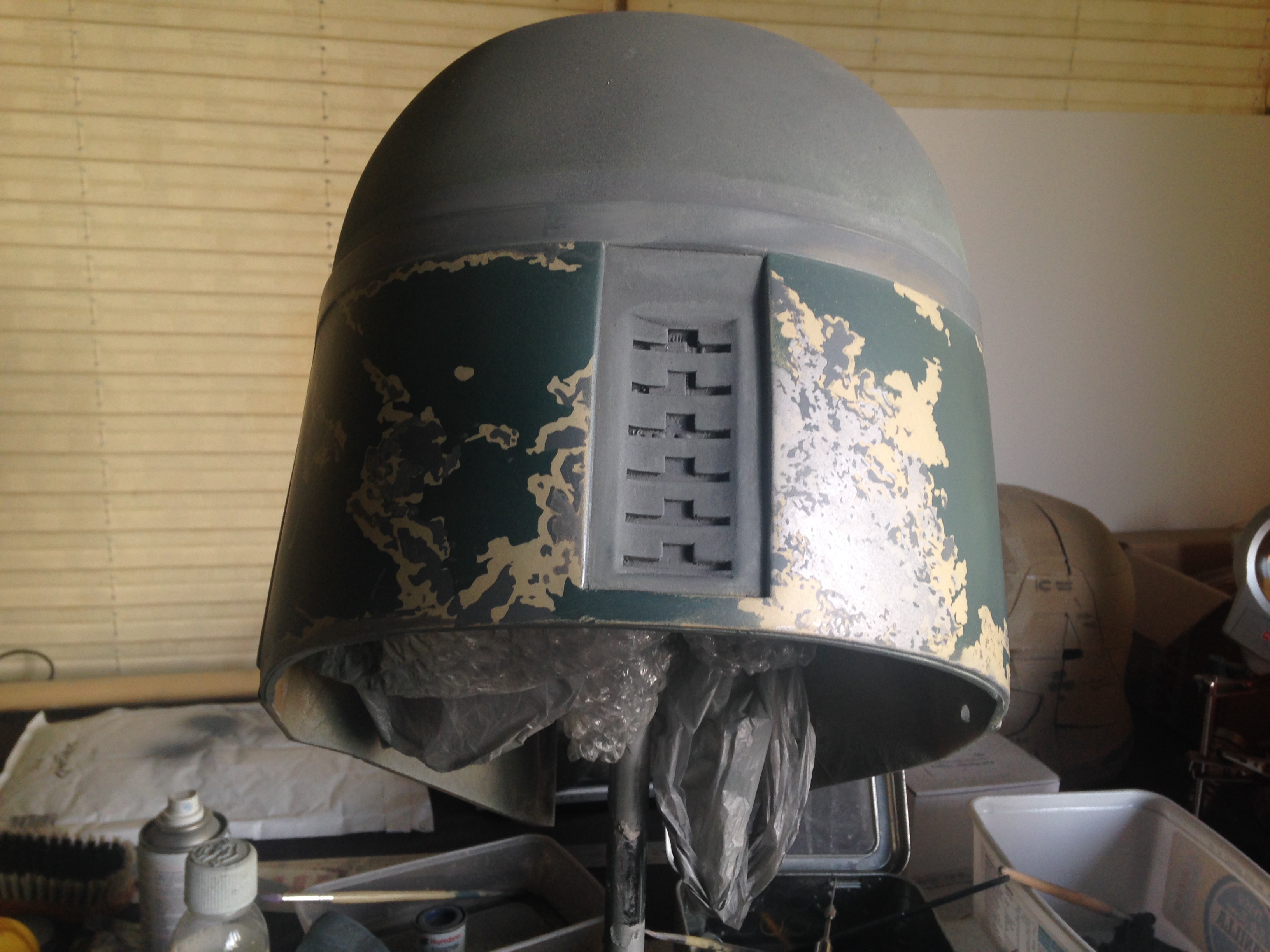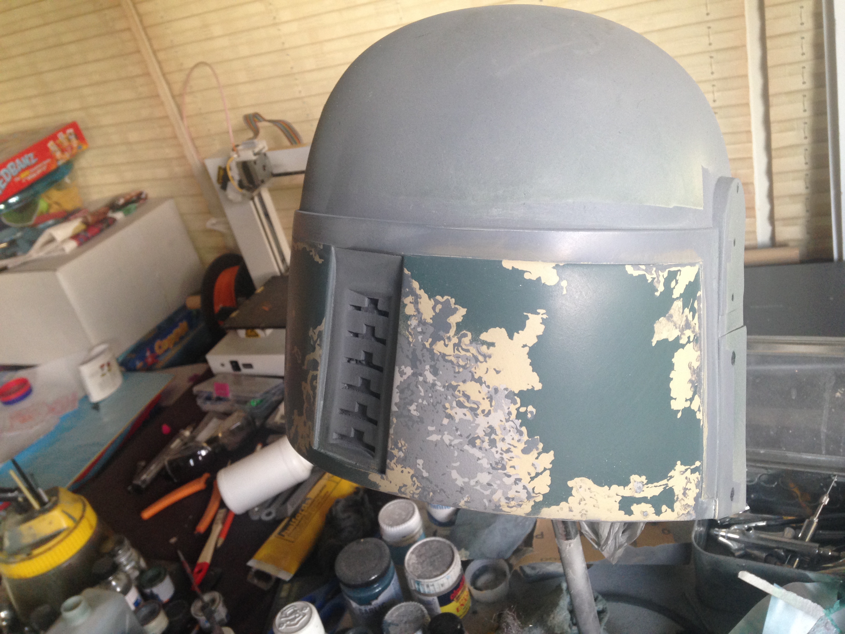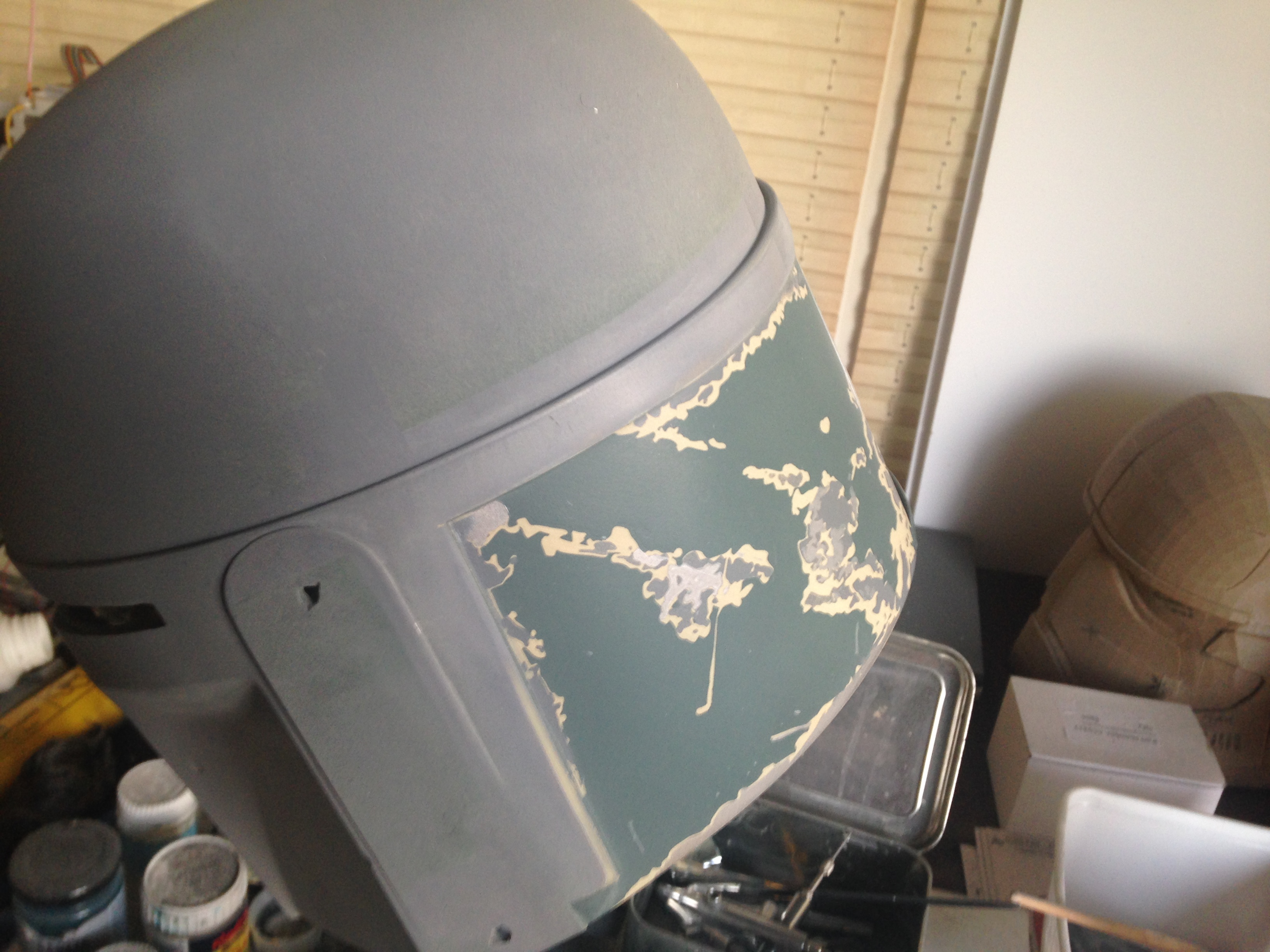 Just a quick update, I got the back panels finished, just needs some more scratches and weathering, I put the base colors of the dome, lower cheeks and the upper, and some weathering on the lower cheeks before the damage, i did my kill stripes but unfortunately I had 2 3d printers on the go and kept checking them went back to my killstripes and took the masking off before I put the orange down ahhhhhhh!