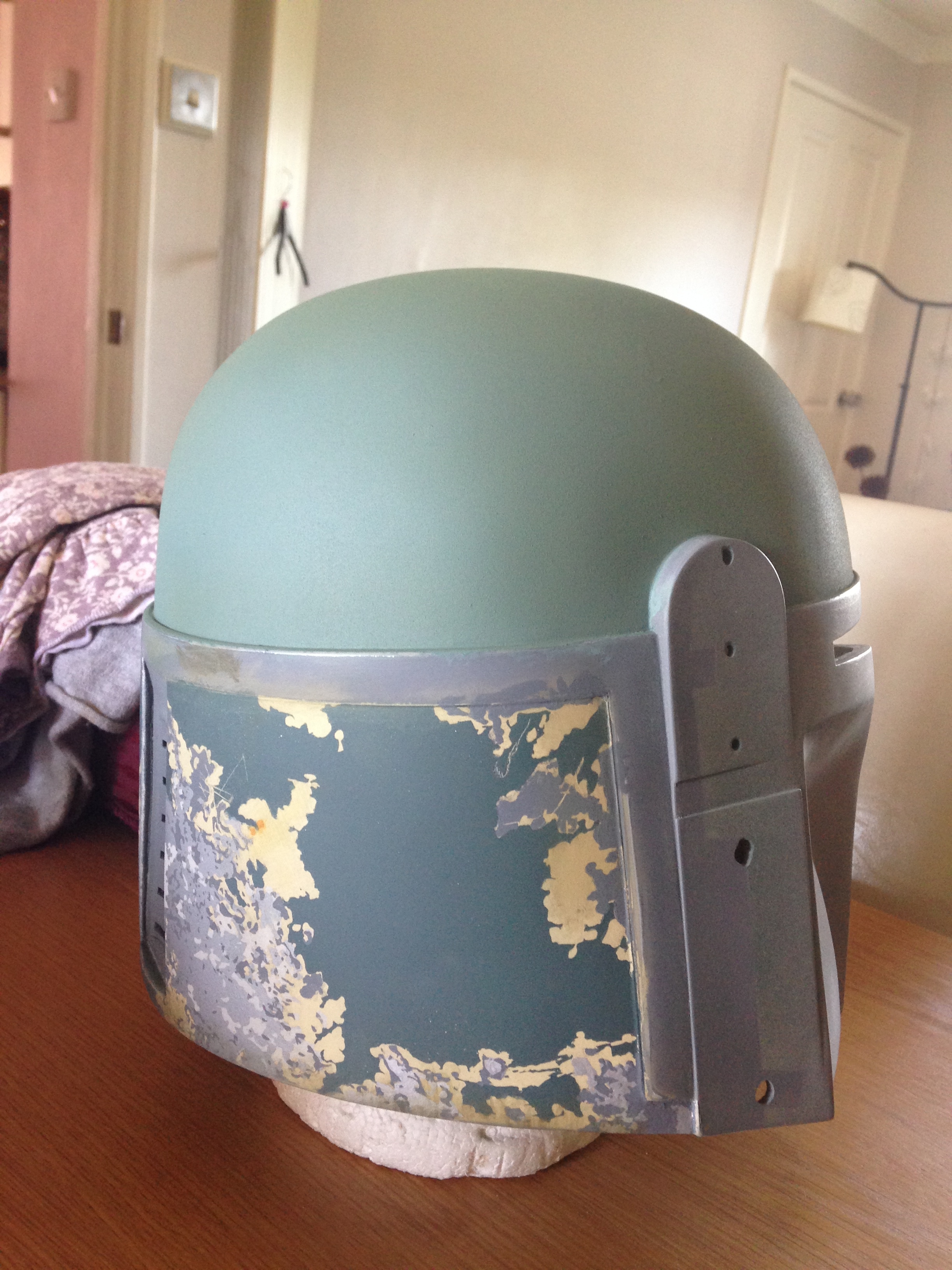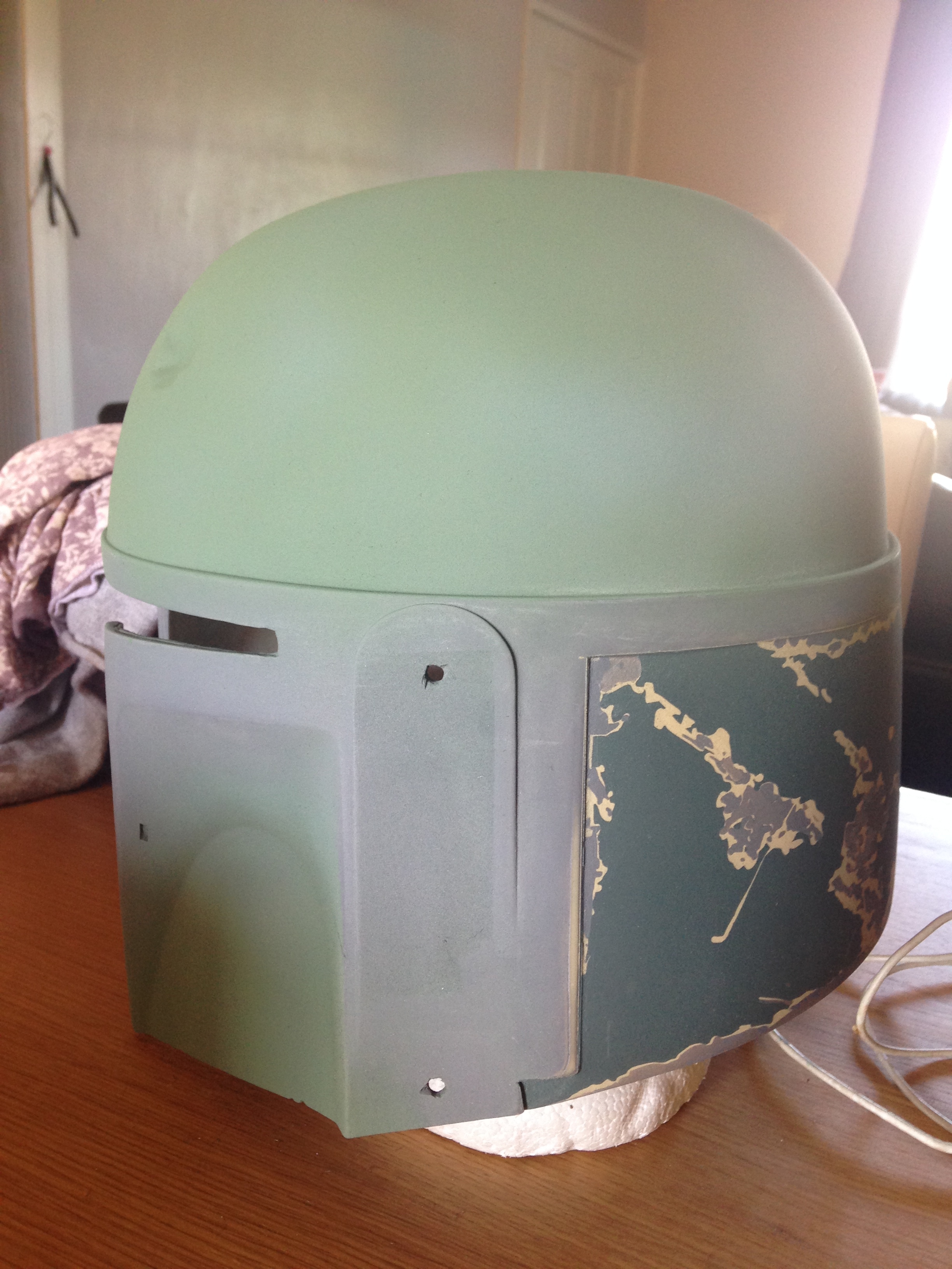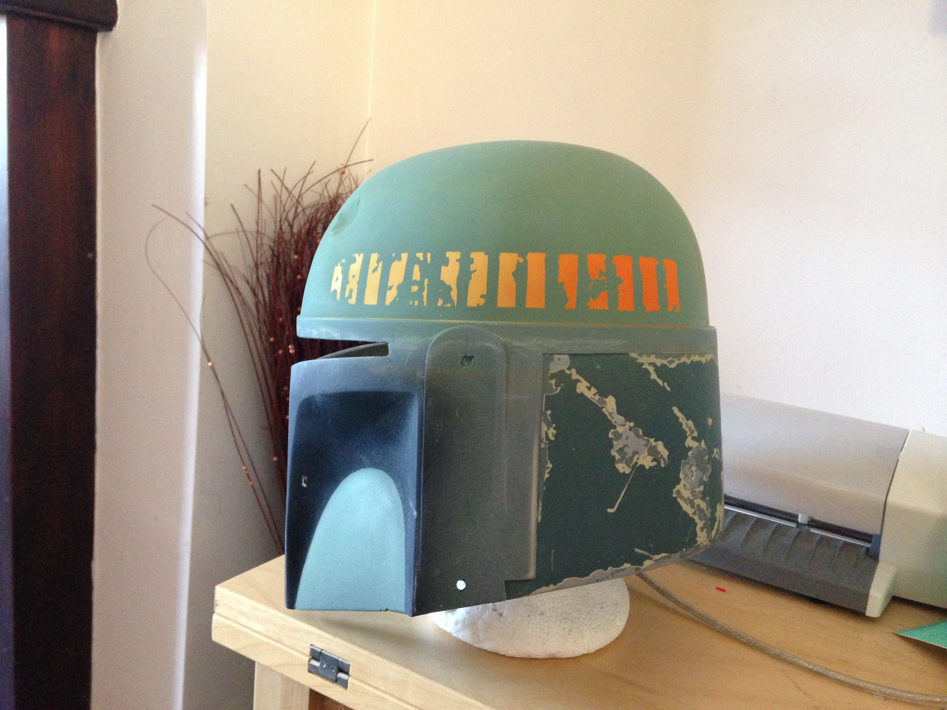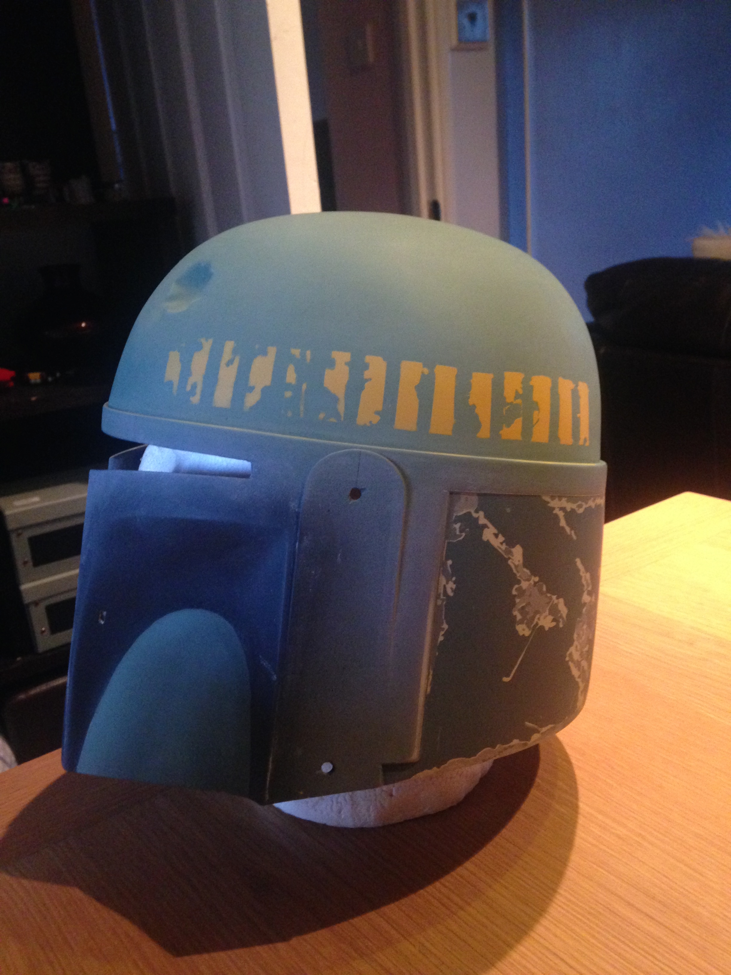 Just a quick update, I got the back panels finished, just needs some more scratches and weathering, I put the base colors of the dome, lower cheeks and the upper, and some weathering on the lower cheeks before the damage, i did my kill stripes but unfortunately I had 2 3d printers on the go and kept checking them went back to my killstripes and took the masking off before I put the orange down ahhhhhhh!