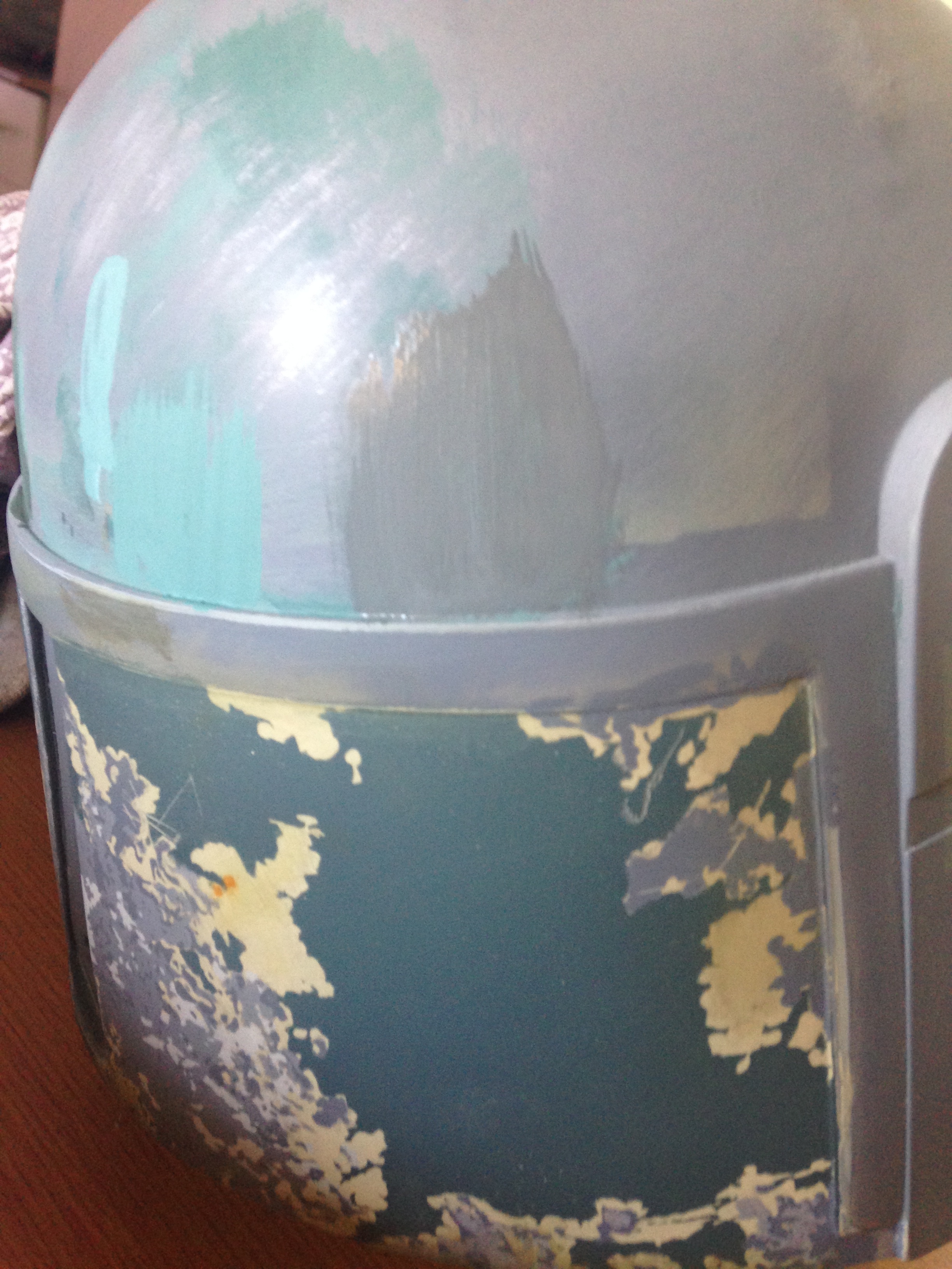 Ive just added some reefer grey and base grey I need to add some more greeny blue, its looking a little rough it needs tidying with a fine brush.........im tempted to start again but I can't this is the, almost 14th I think time so this is gonna have to do