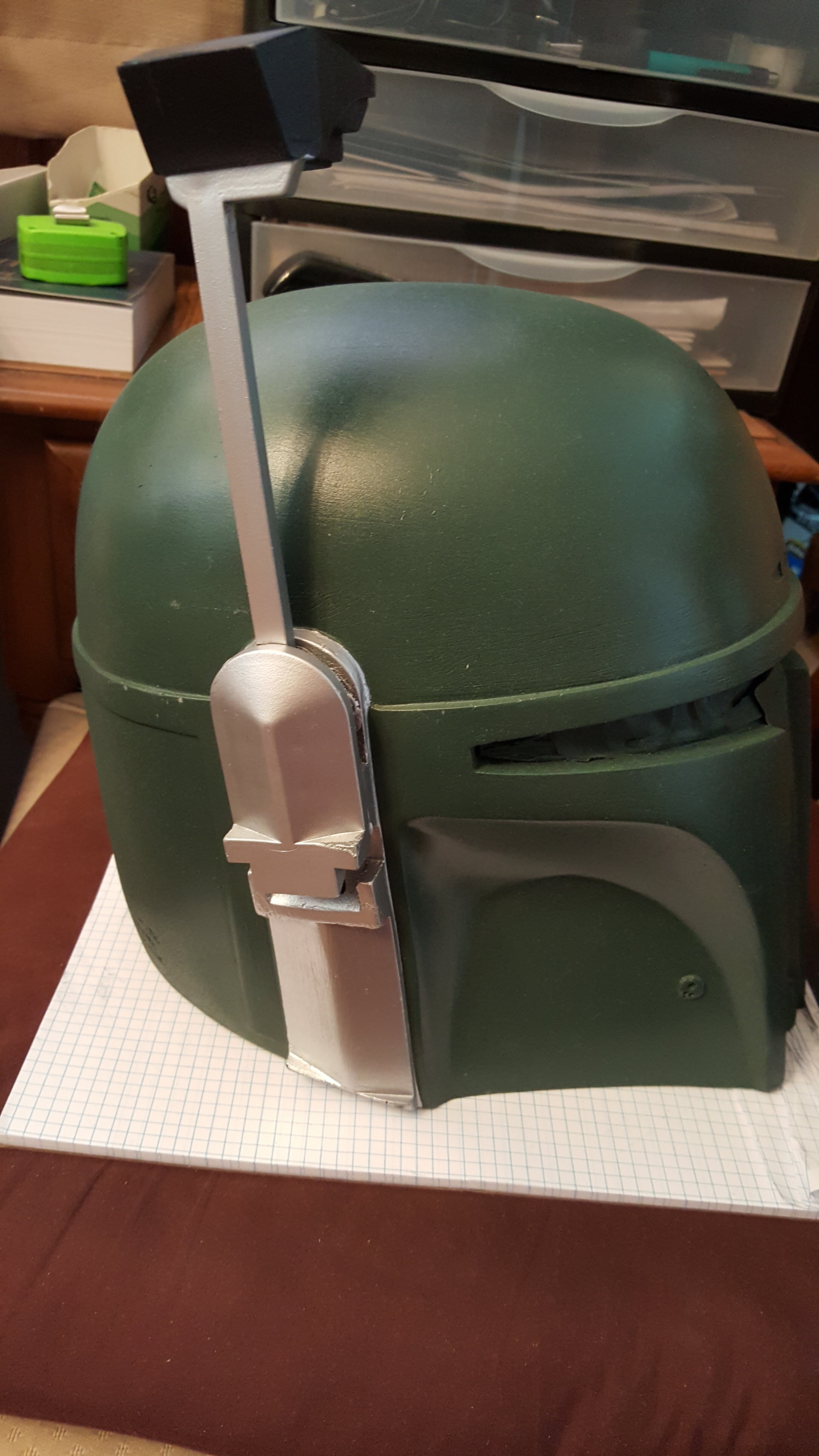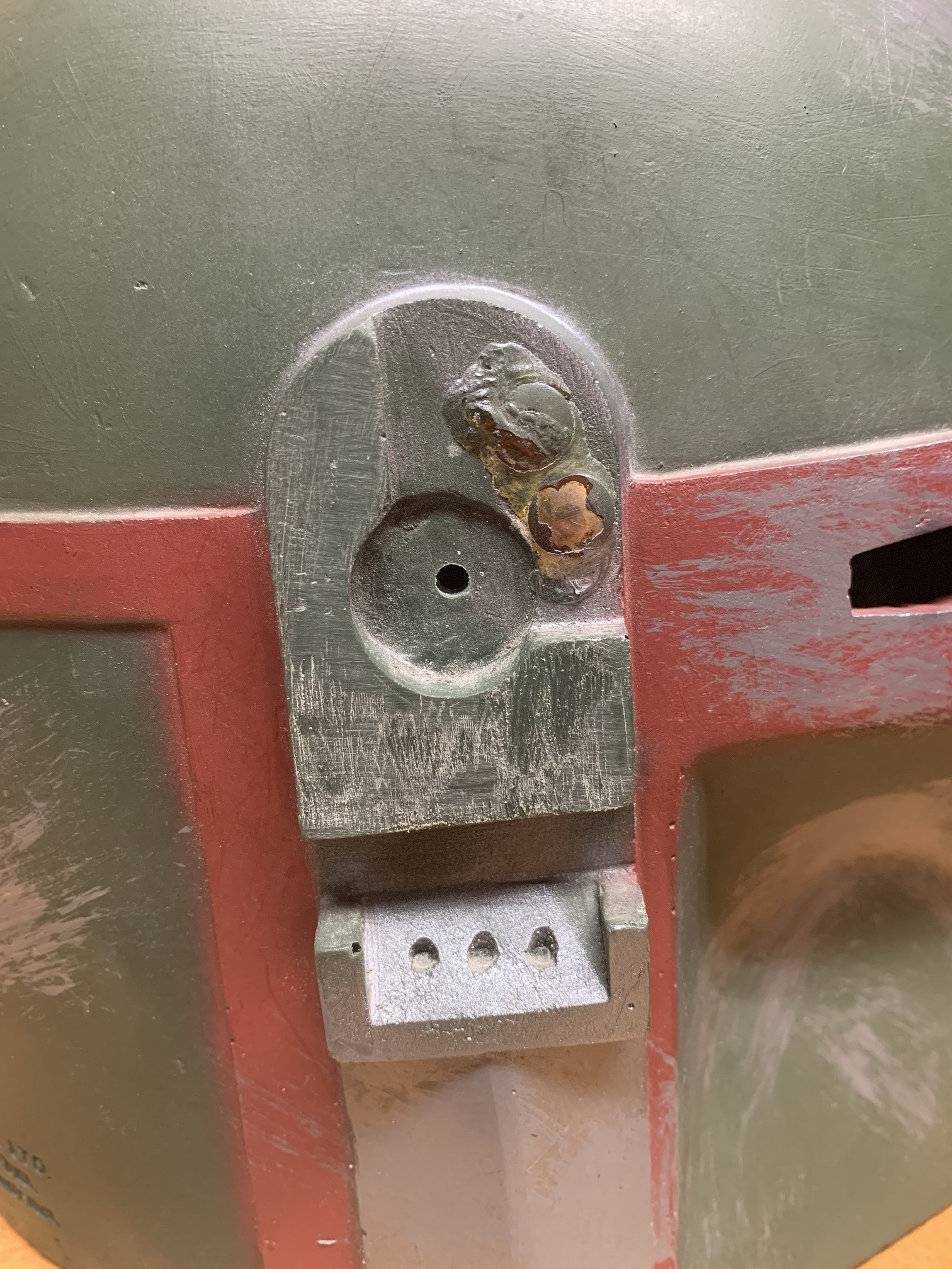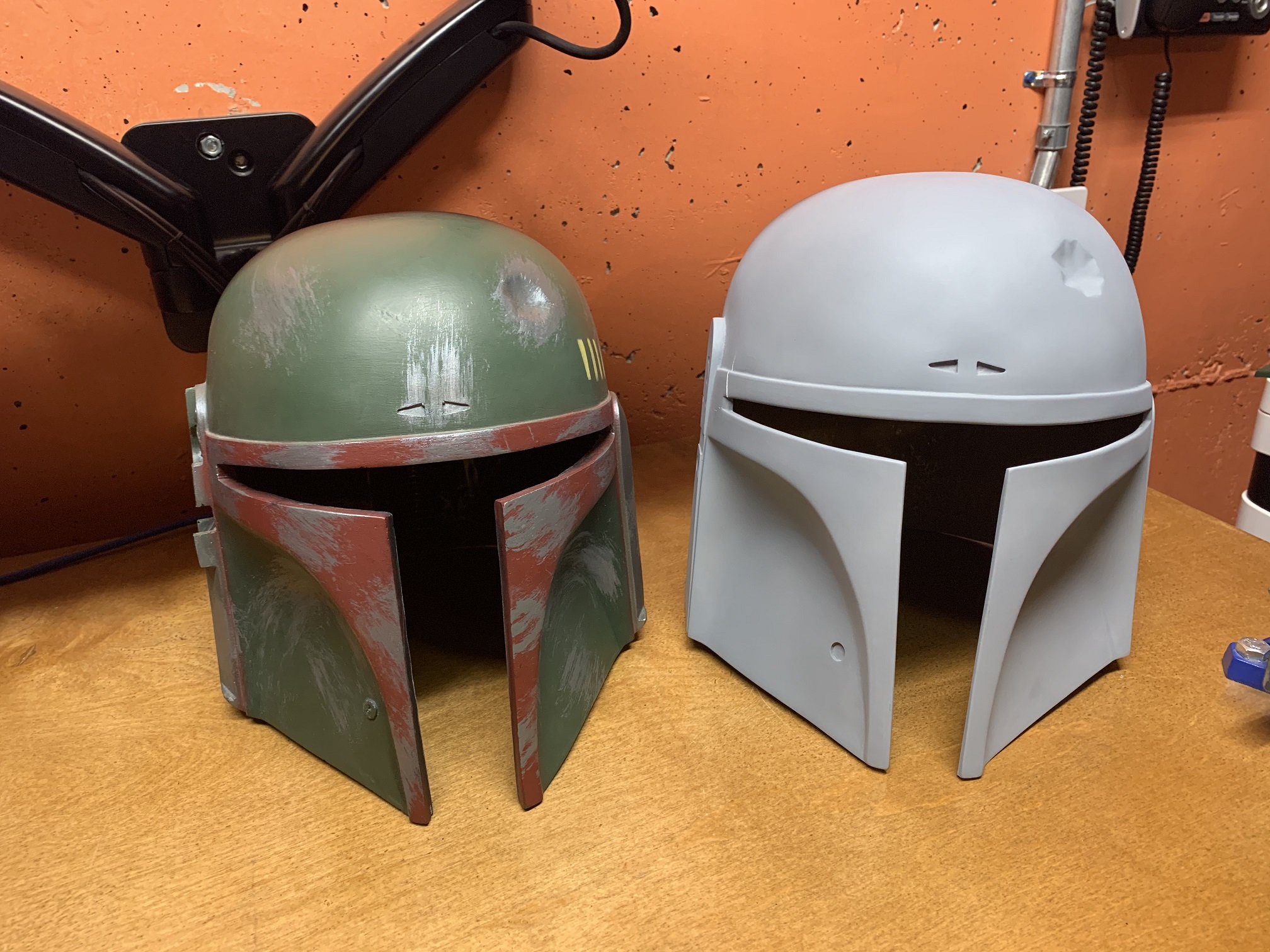 As you can see the Boba Maker bucket is a bit bigger than Don Posts version. Sadly, I have to send my Boba Maker helmet back, as you can see the crack (not as bad as your crack on your Don Post) that is in the upper left hand corner by the Mandibles. Thankfully Boba Maker agreed to simply do a re-cast for me.