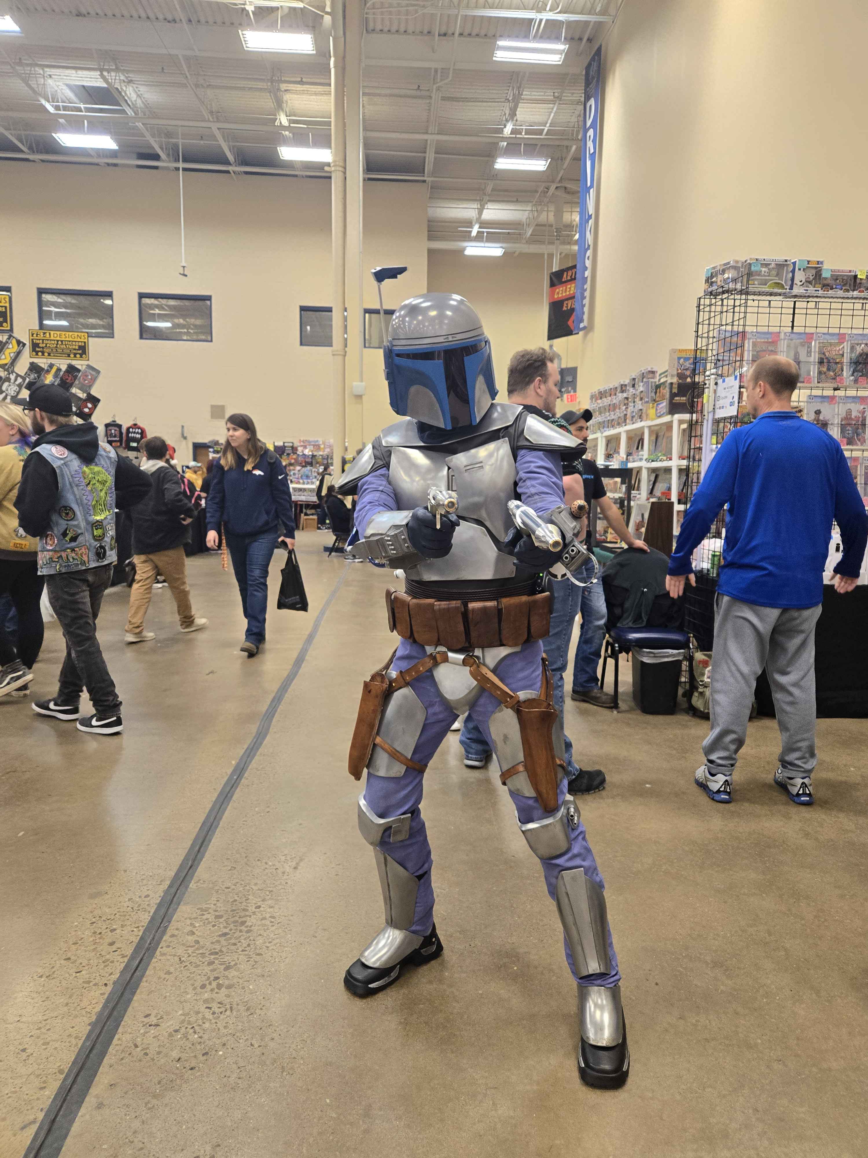 Finally got Jango back up onto the mannequin after the con. Worked today on some armor weathering and tightening the jetpack harness so that it isn't so "floppy". Broke a gauntlet dart in the process, going to fix that soon.