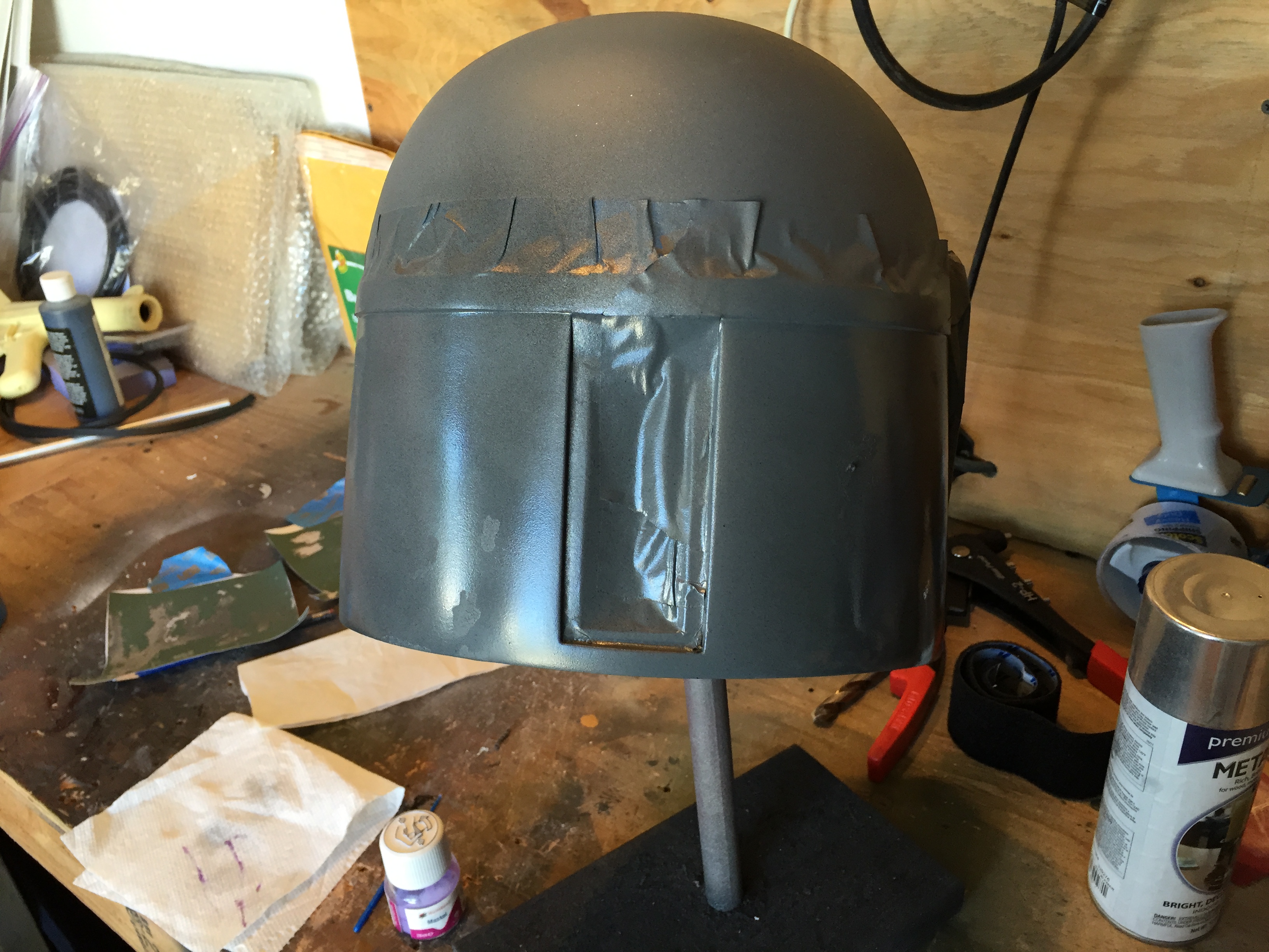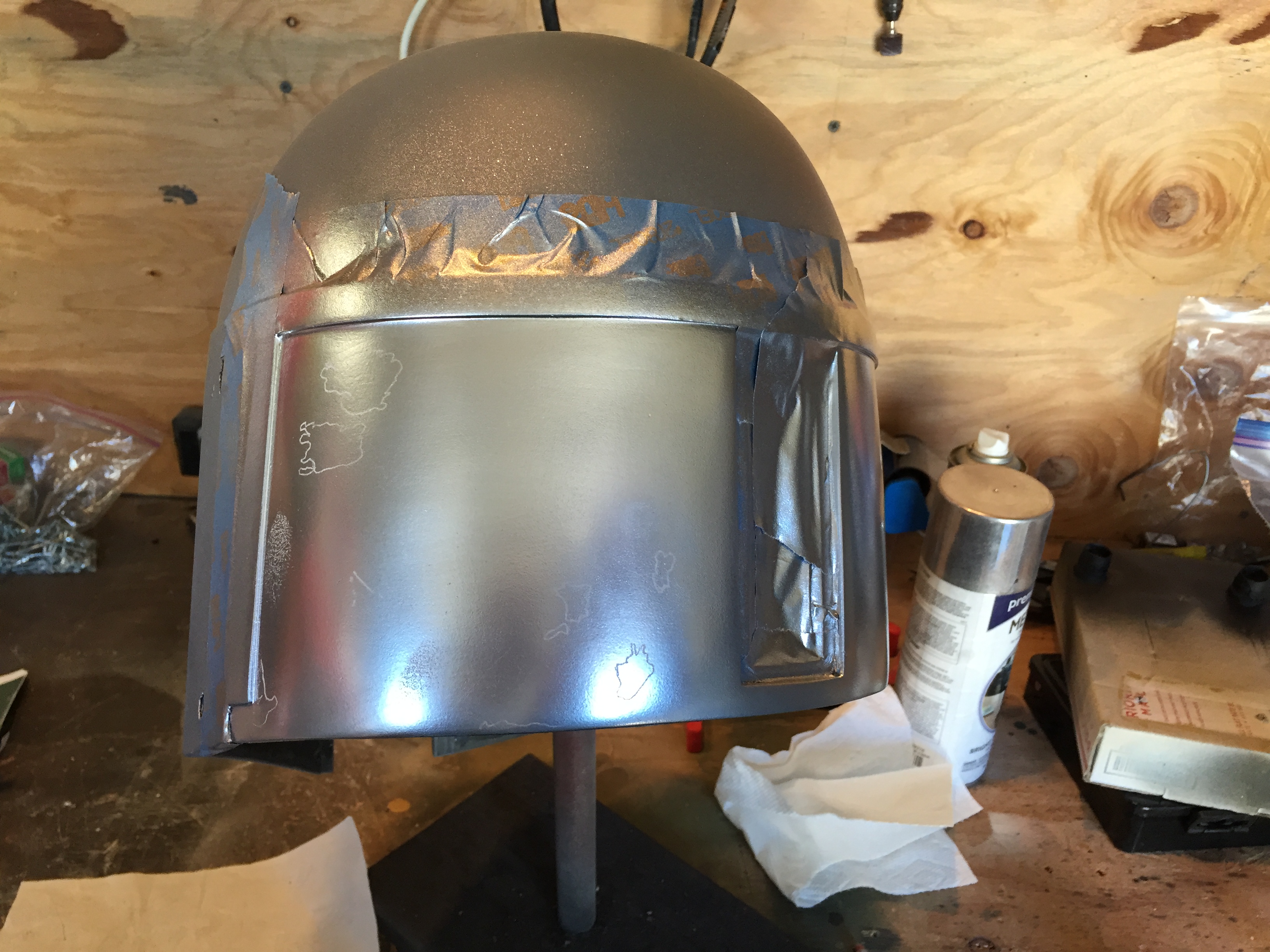 Sprayed grey back down after masking the silver then misted it in some spots with black to give the grey that two tone look .