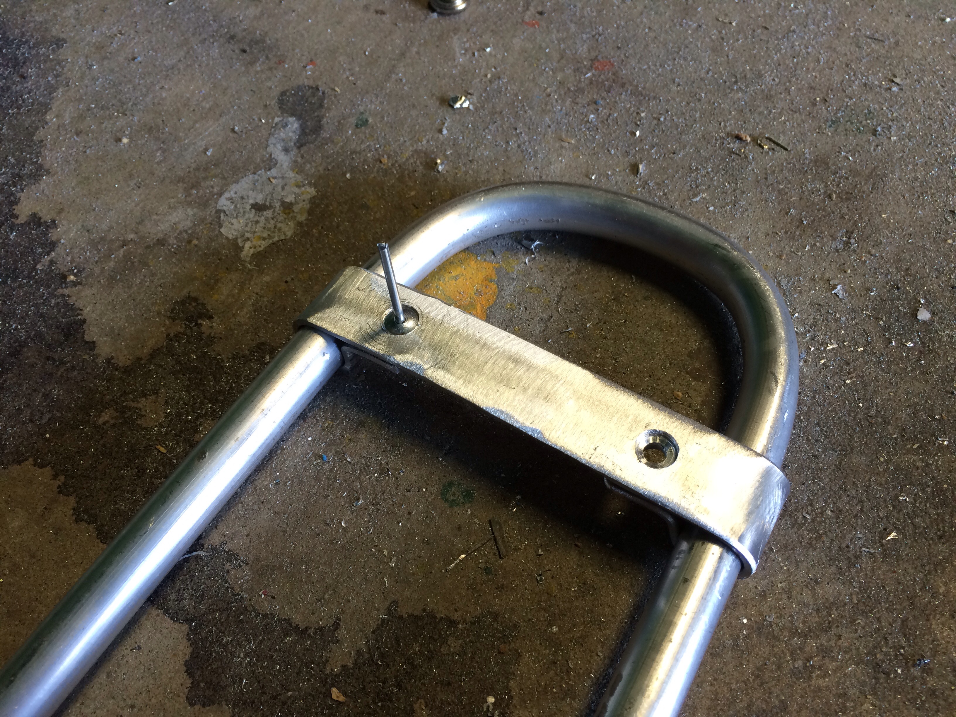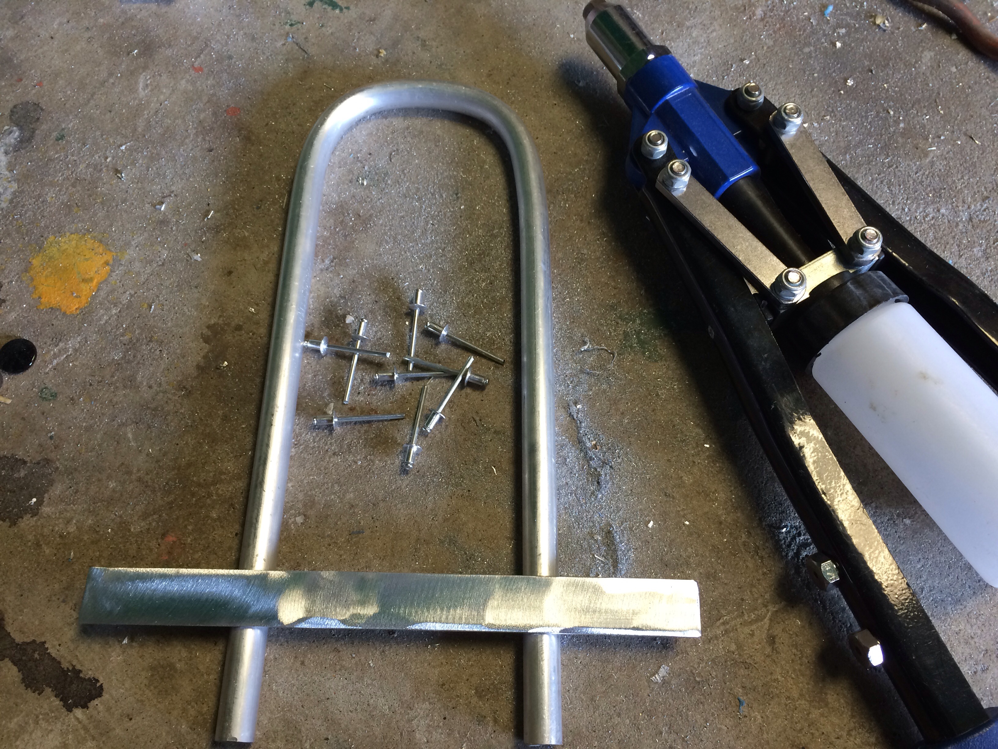 So once you have the tube bent take the aluminum strip you cut and align it up and Mark your holes then drill and counter sink them use your rivet tool to join the metal peices