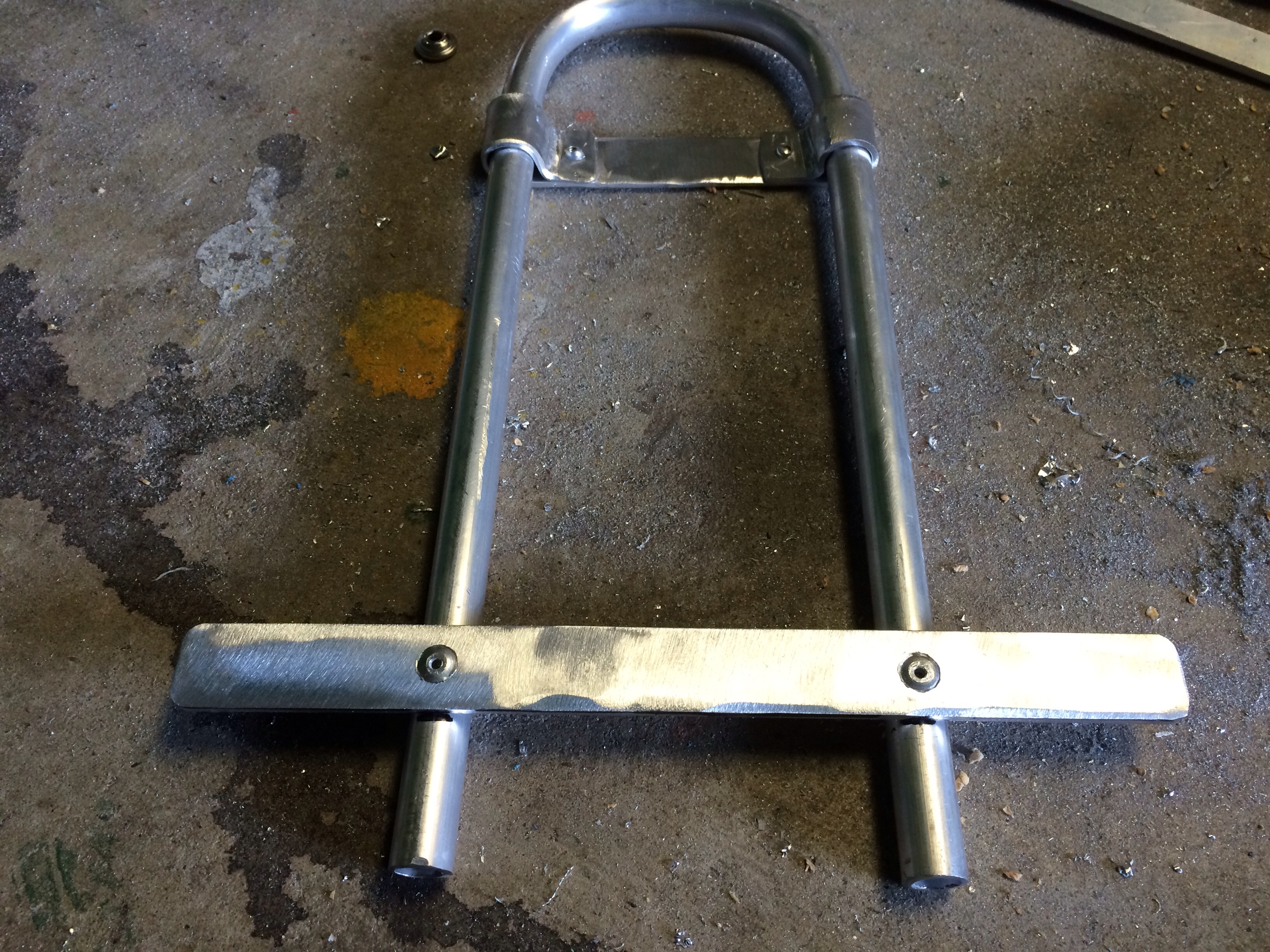 Finaly ls wrap the bottom support around you d-loops I used a hammer a flat bar fotr he tight inside bend.