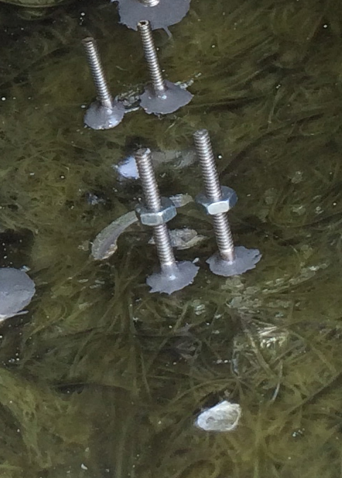 I guess I am a "neat freak" -- while I plan on securing the wiring for my servo with hot glue, I counter-sunk some wells for these screws secured with JB Weld to mount the motor: