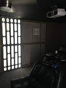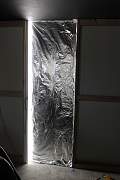 Since I am only using two lights per panel, I decided to cover the wall area with aluminum foil to help with light reflection. I tested the panel against a white wall and with the foil and the foil did help reflect the light once the panel was installed. The lights run off a light switch so that I can turn them on as soon as I enter the room. The good thing about putting this theater room upstairs was that I had easy access to the attic. So I was able to run an extension cord through the ceiling to power both panels with one switch. I was able to completely hide all wires, so I am happy with how it came out.