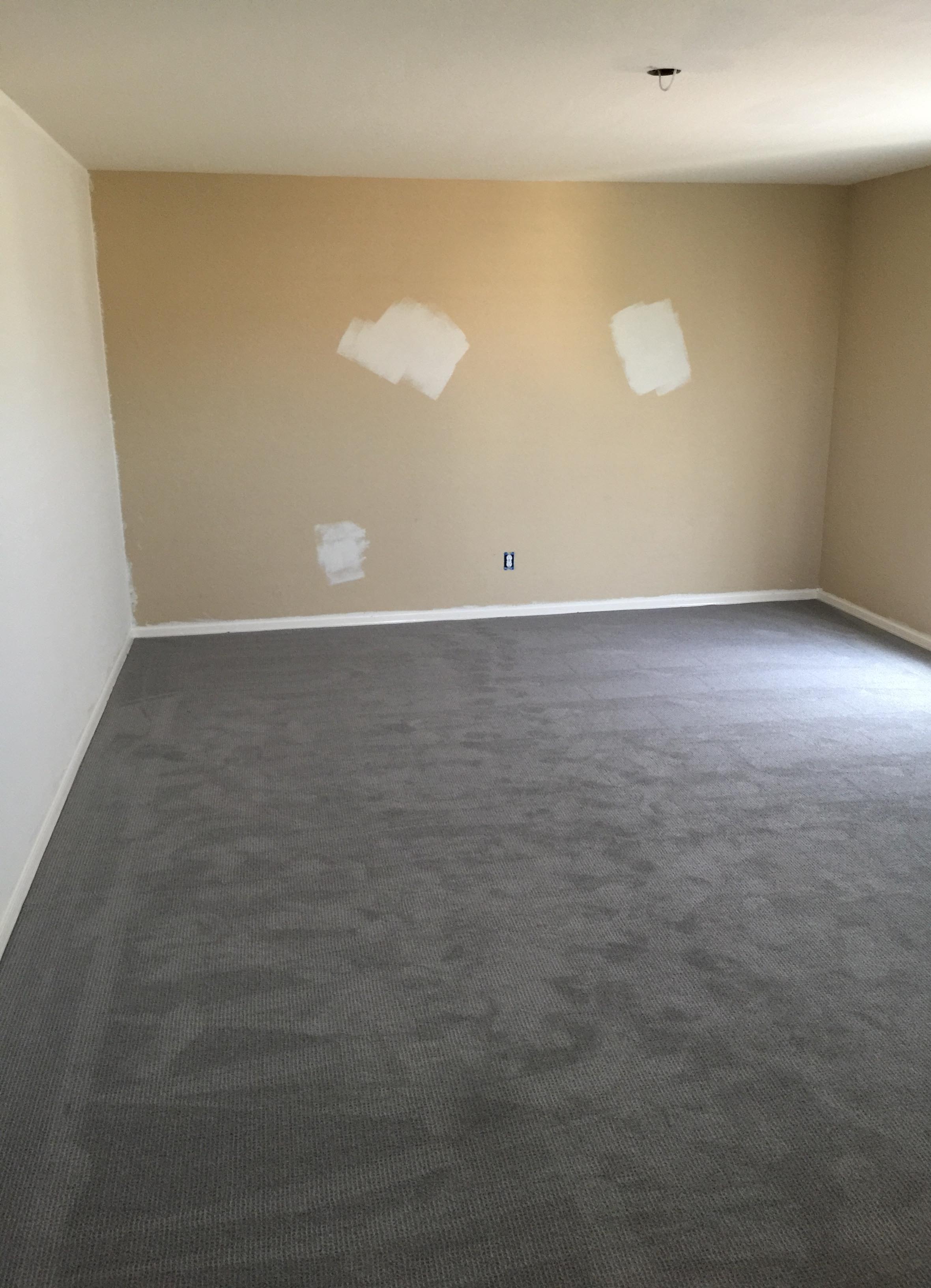 Here is the loft prior to starting, put in some new gray carpet and started priming the walls to cover the old color.