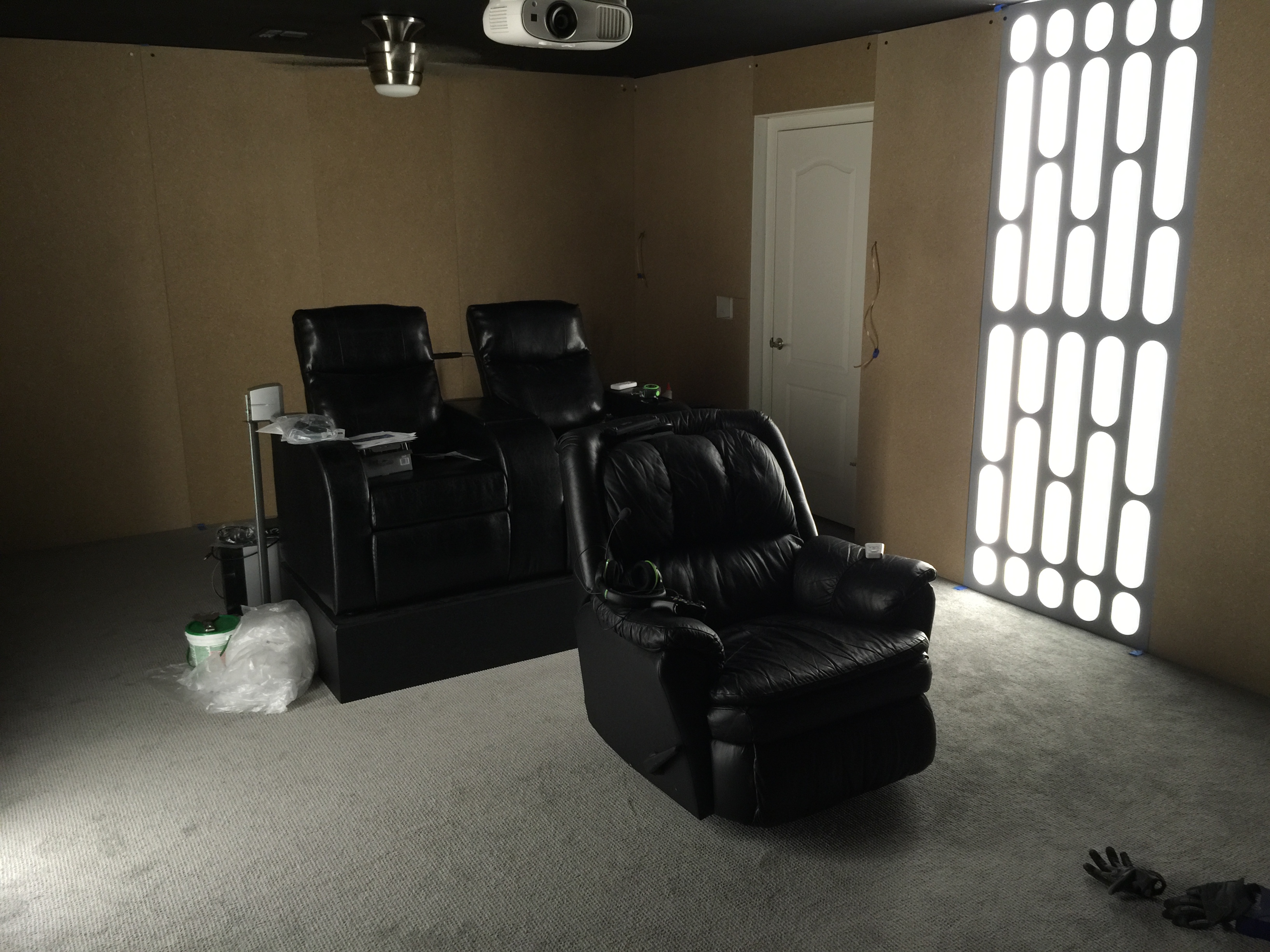 Been off the boards for a while, working on some home projects, one of which is my new Star Wars home theater. My old "mini theater" was getting too cramped so I decided to convert the loft into a larger theater. Sorry if you've attempted to look at some of my older threads, I recently switched web hosting companies so my old photos are mostly off-line at the moment, I'll work on putting those up next.