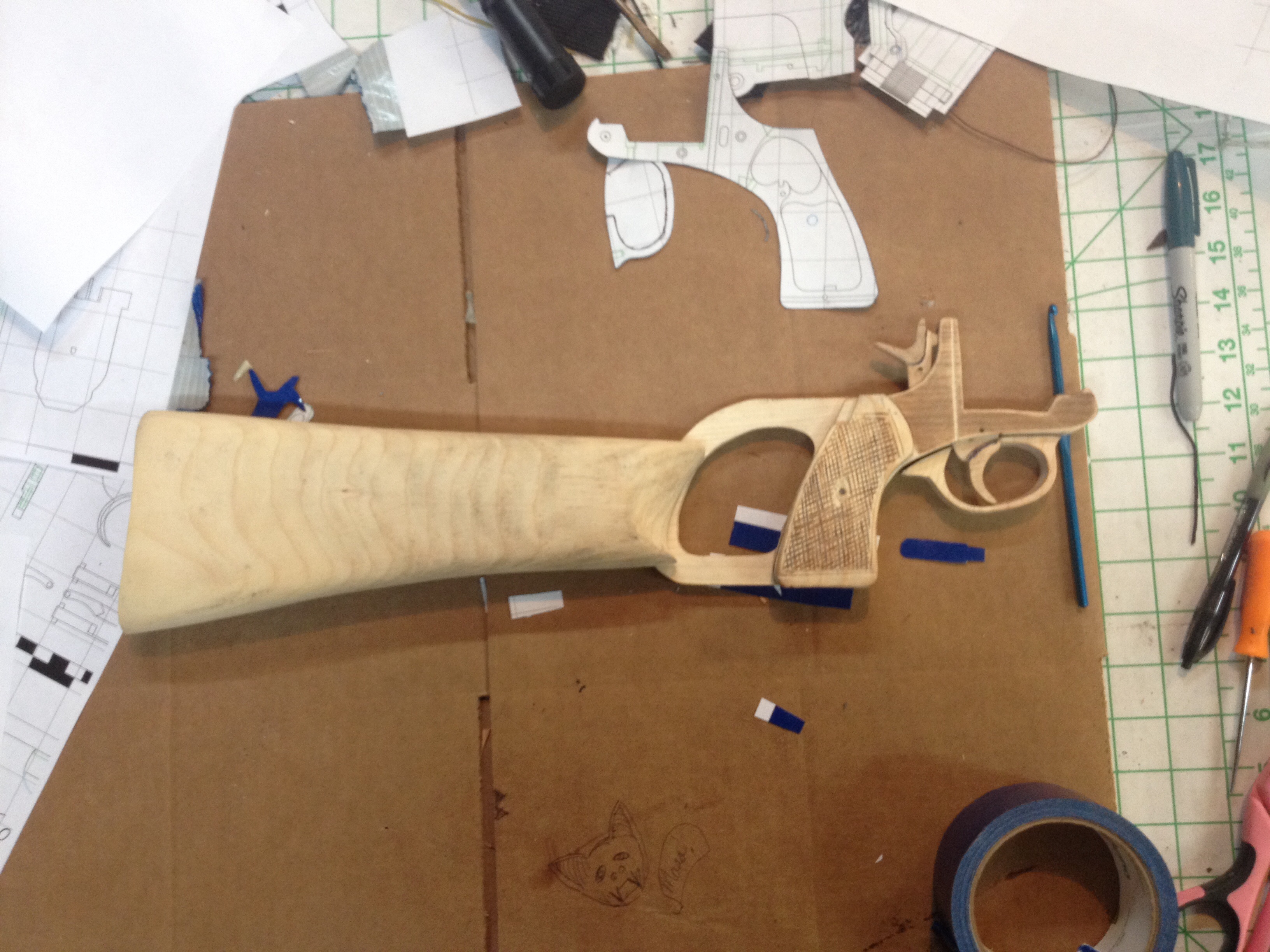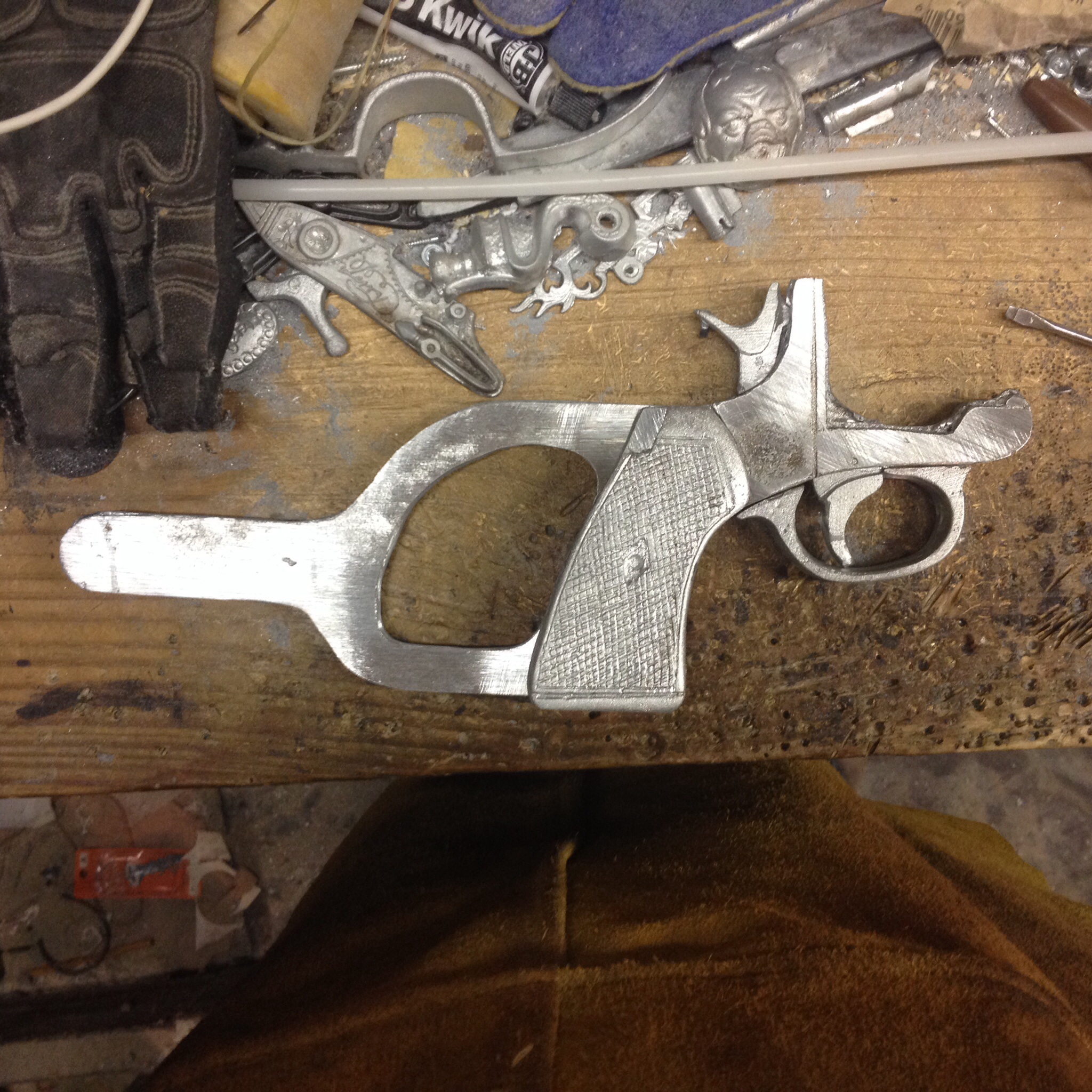 Hey guys I'm trying to do a real quick version of the blaster because I'm wearing this at dragon con the end I the month so I printed out the files and i did the base in wood the. Made molds and cast it in metal , I plan on getting a nice cast of te webley and making molds that are actually nice lol but yea it working pretty well so far. I normally make pirate props like this