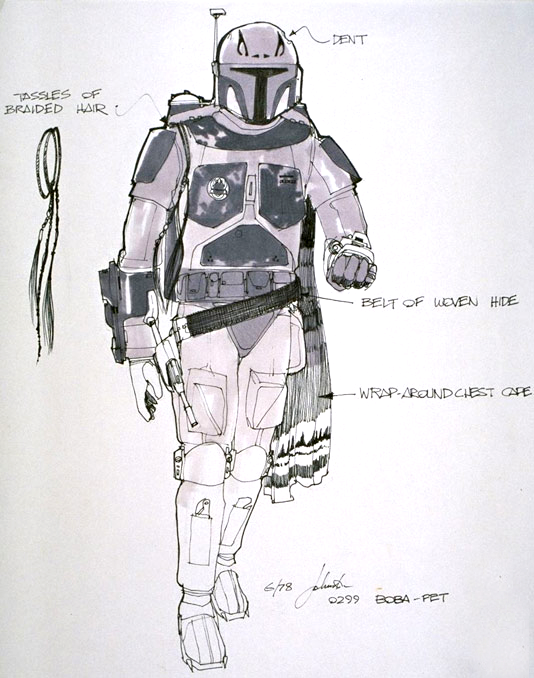 The concept art you are talking about was drawn after or in time of the Supertrooper footage (28th June, 1978) when the Supertrooper idea was already dropped and replaced with the single bounty hunter, Boba Fett:
