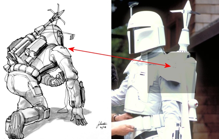 So, what you see on those concept drawings is not a proof that it was used or intended to use on the real suit(s). But you might be also right regarding the 3 holes being present on both sides and later the right side filled in to achieve a non-symmetrical look.