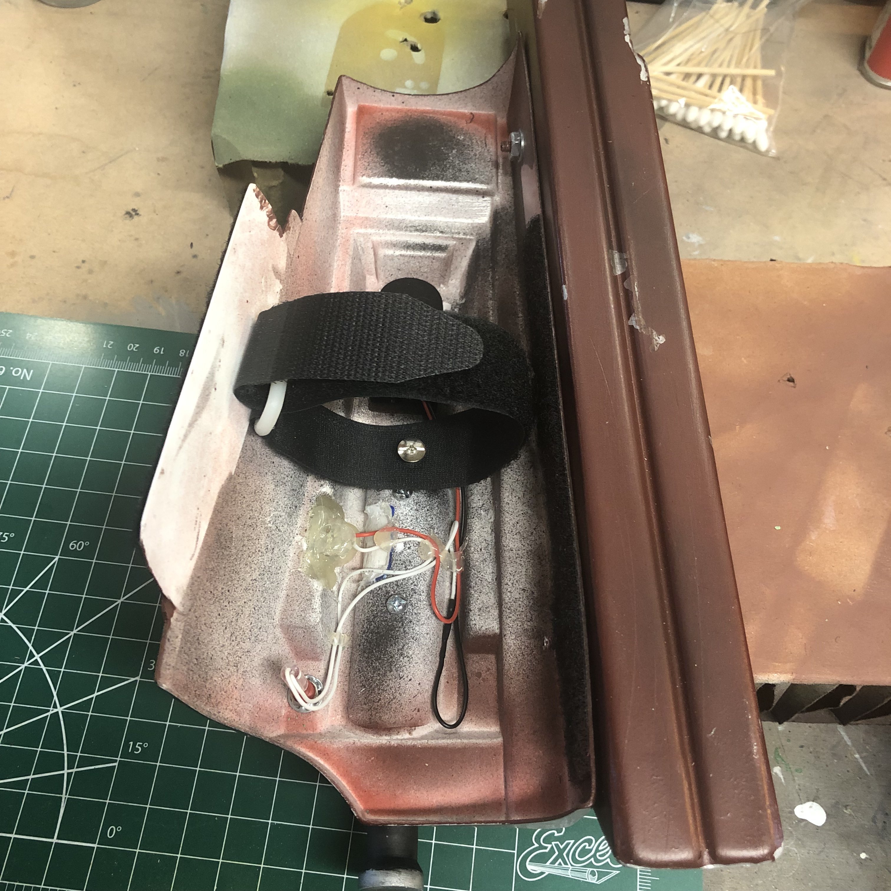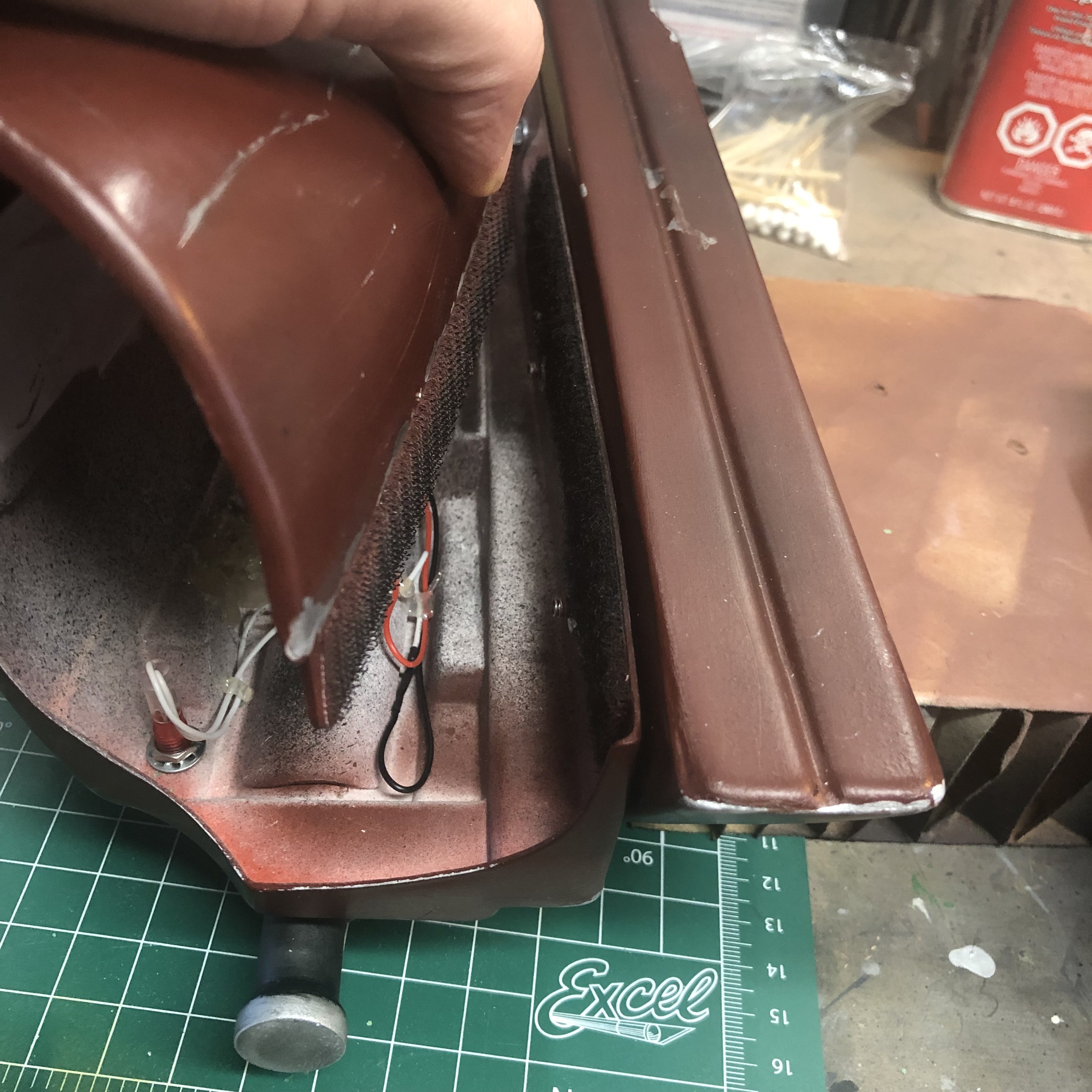 You can see that I used heavy duty Velcro to hold both together. Installed the hook and loop on opposite sides. I also had to glue in some styrene strips to lengthen the areas were the Velcro attaches.