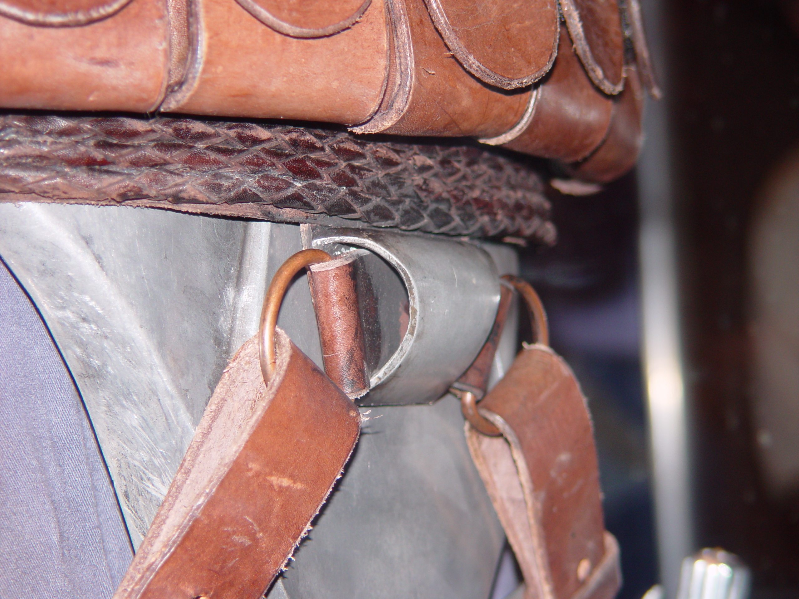 I've filled and sanded the majority of the pieces, I just have the codpiece and back plate to go. Pieces are primed and have snap fasteners attached to the other side. I heated up the sintra and pushed a scalpel butt into the PVC for the dents and dremelled in the rough scratches. The codpiece dent was trickier as the sintra is doubled up, so I hacked away at it with a scalpel and plan t even it out with the bondo stage. Again, the back plate isn't that accurate, but it fits my back well.