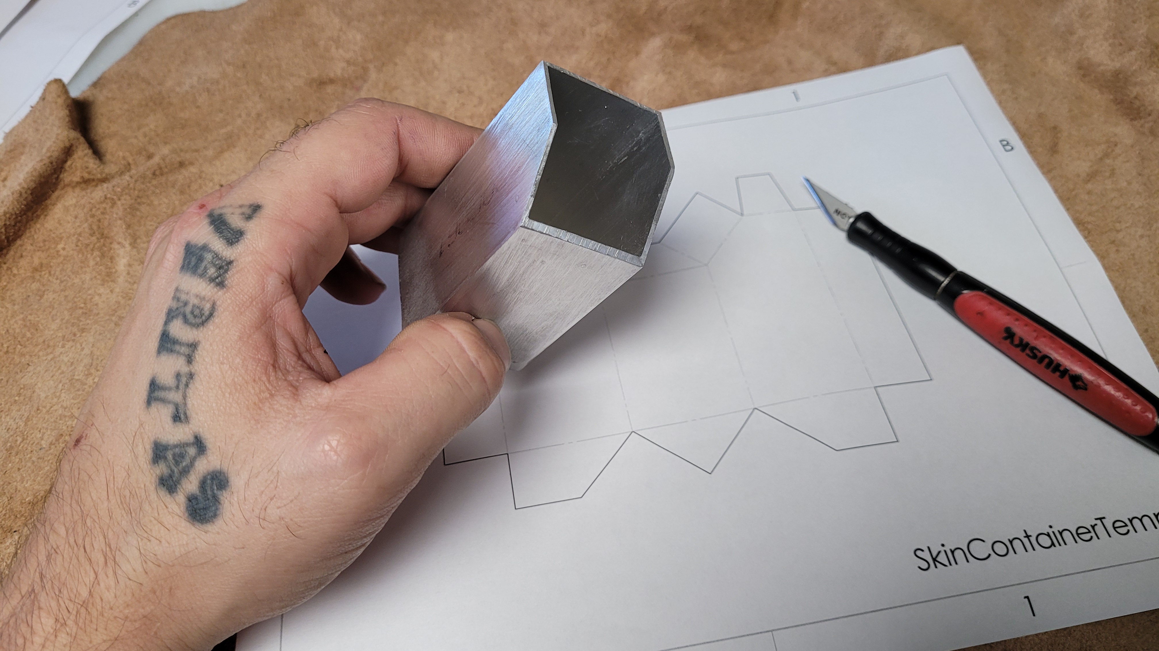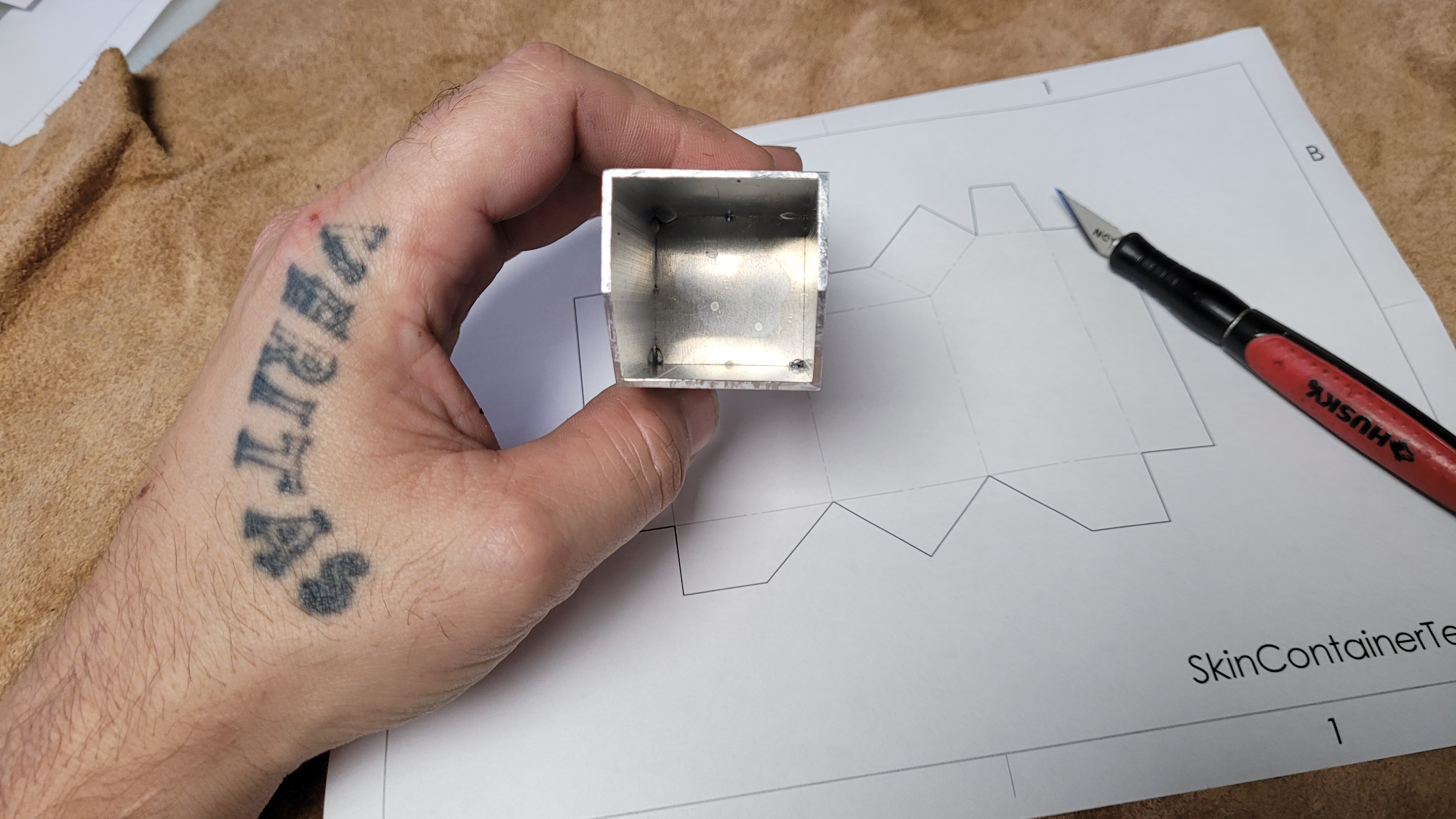 Wifey found this a fun and appealing process as well and wanted in. She began smashing holes in the bottom following the template. She also noticed from the CRL "pinholes that look like the start of new holes". So I got her a tapcon screw from the garage which she used for these pinholes.