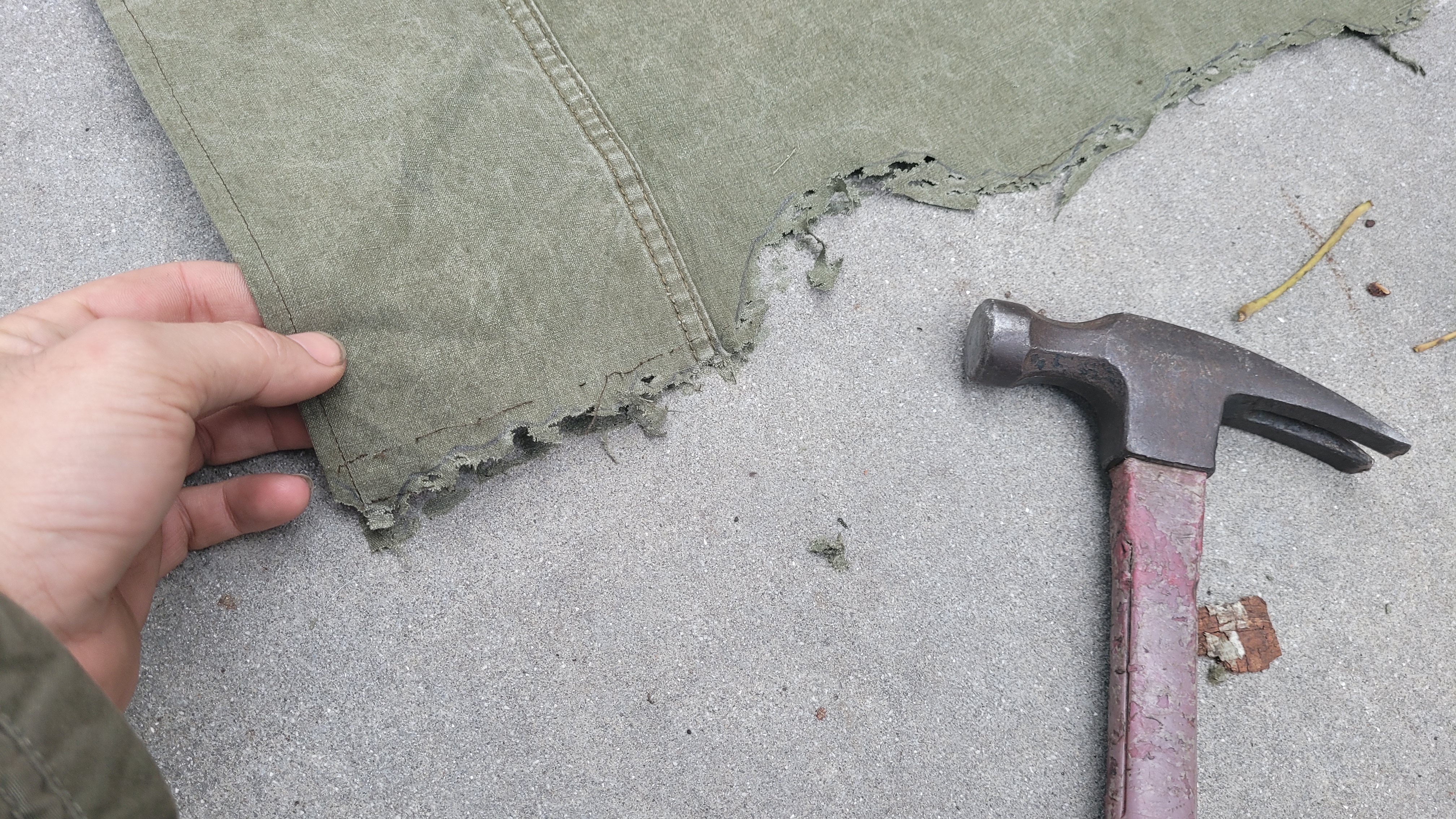 Using a hammer against the fabric with the concrete behind it made for some really cool and fun results.