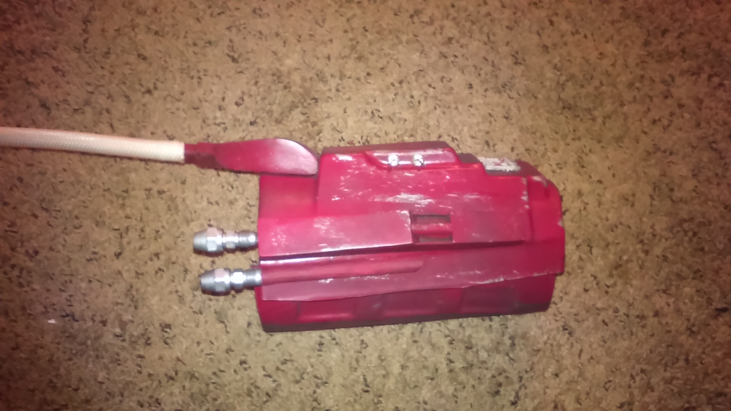 Anyways, since his gauntlets lack the other 2 hoses, oh I might add I bought the rotj version, I had to make my own, my first stop was at home depot for some brass fittings, got them painted them silver then with a dowel I cut on my jig I got the rod, I actually had to shave some of it off so it would fit snugly into the fitting...then I also found a screw long enough but fitted snuggly into the fitting for the housing...