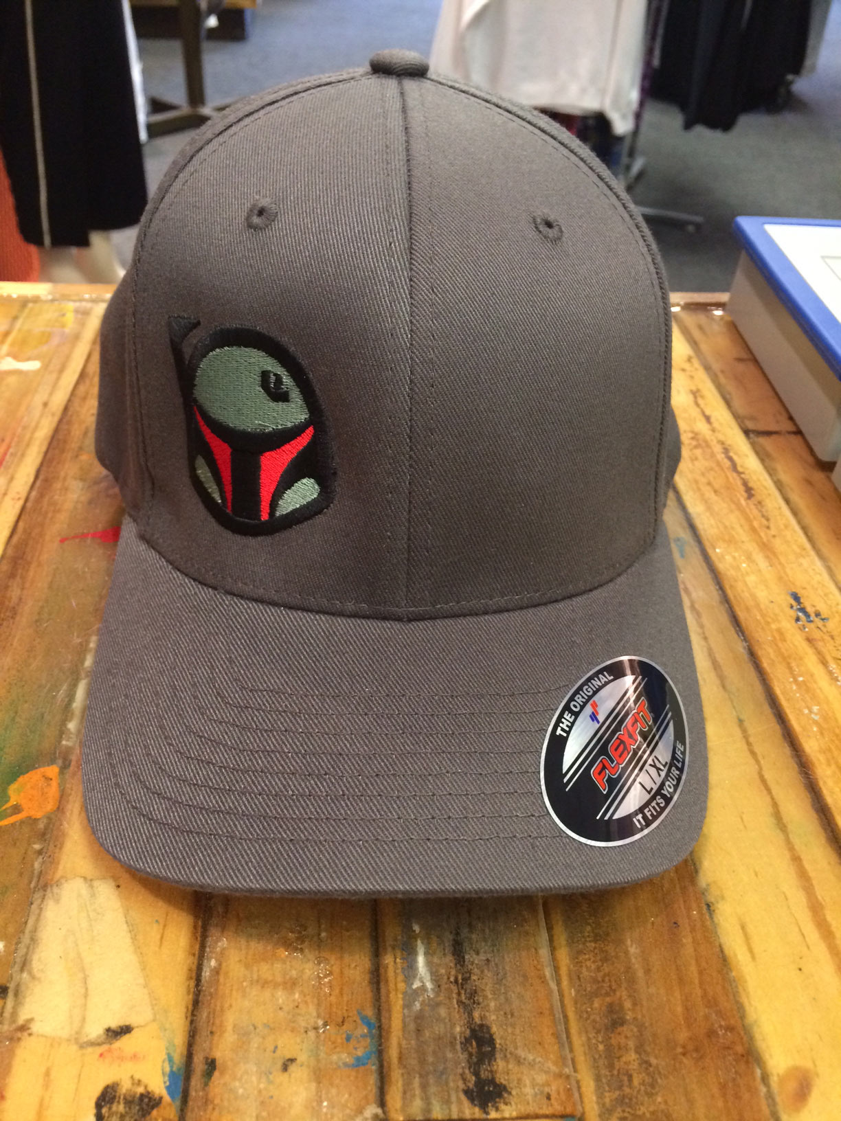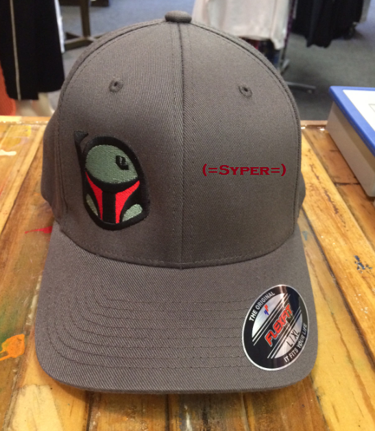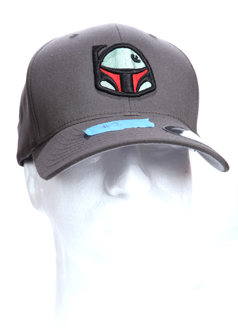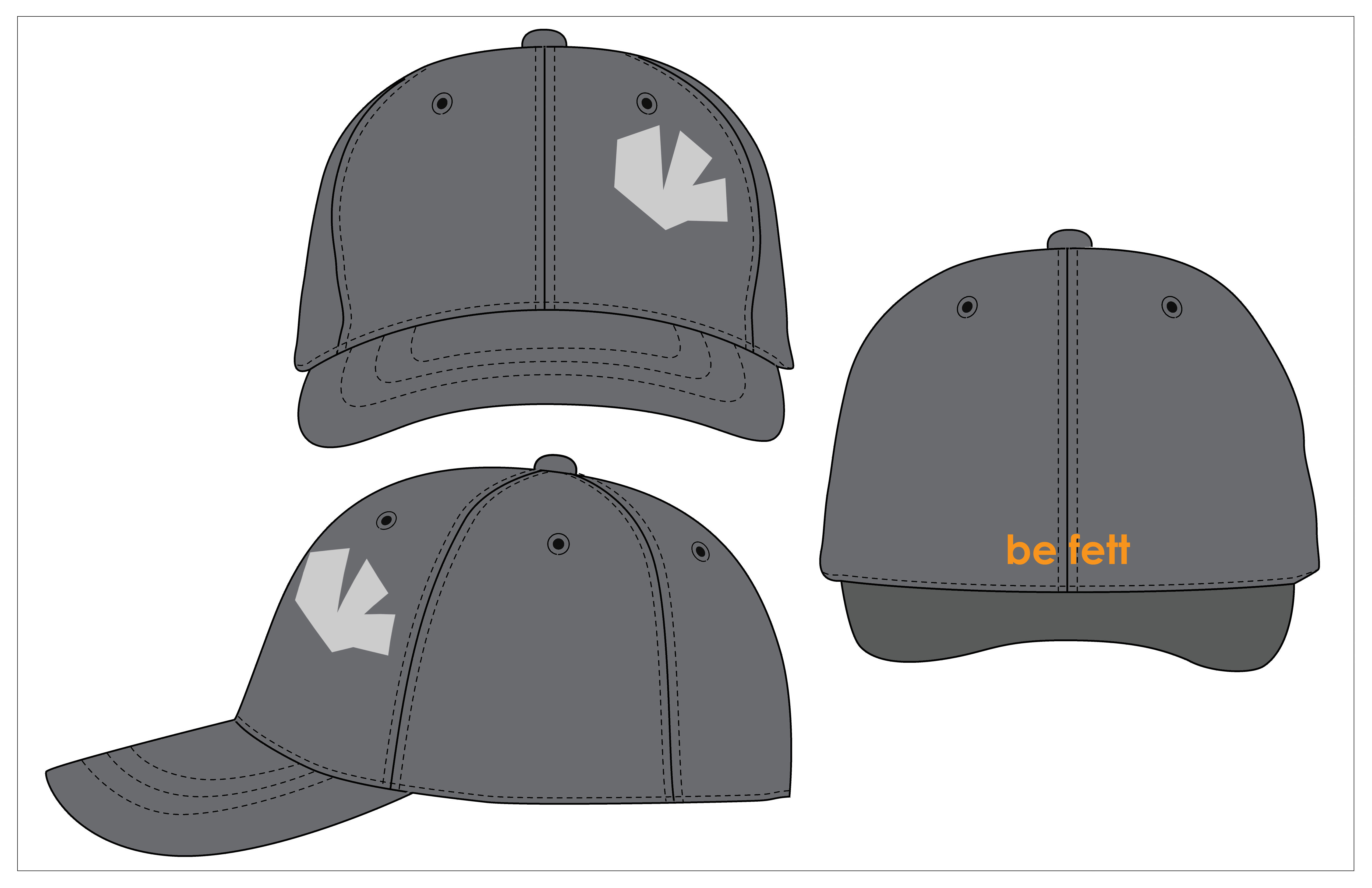 I would make the Fett logo a fraction smaller, and put it on the other side (the right hand corner- right as in looking at the cap as in pic 2). I would then have the URL on the side of the cap. The URL could also look good under the logo, but if together, would still have it a little smaller and shift it all to the right.. :)