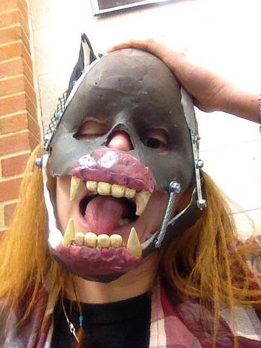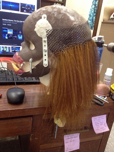 Made the entire mask after moulding her head and teeth so she could add on the fangs, and then started adding the hair!