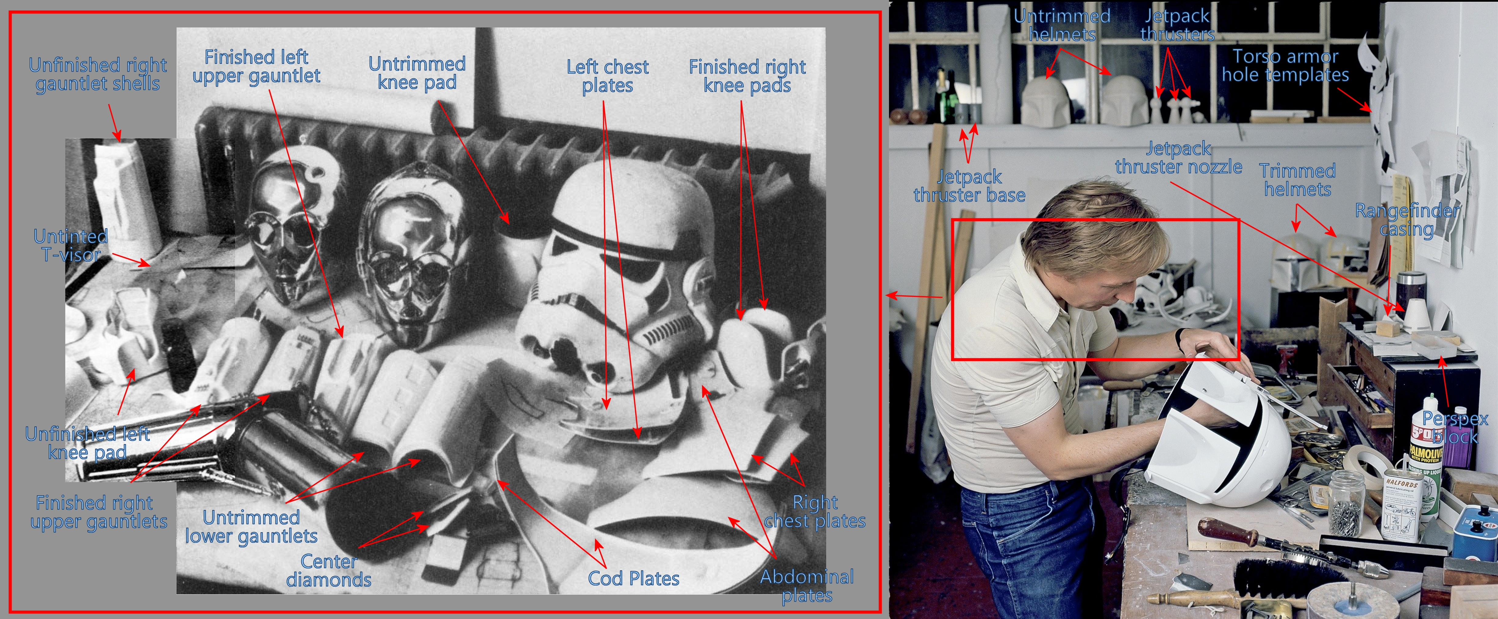 Title says it. Wondering if the ESB helmet was ever painted gloss white for the supertroopers, or if it was just primed and shipped off to be painted as Boba Fett. I know the Daydream helmets (PP2, Sandy, and ROTJ) were, as pointed out by boba87fett here, and I believe it's understood that the helmet used in the original supertrooper screen-test footage was the PP1, but I've never seen anyone attribute one of the supertrooper helmets to the ESB helmet. Some of the call sheets seem to refer to the ESB helmet as "grey," which I believe it's also understood means primered, but was this the raw cast being primed to be painted as Boba Fett, or the supertrooper helmet being re-primed once they decided nix the gloss-white design?